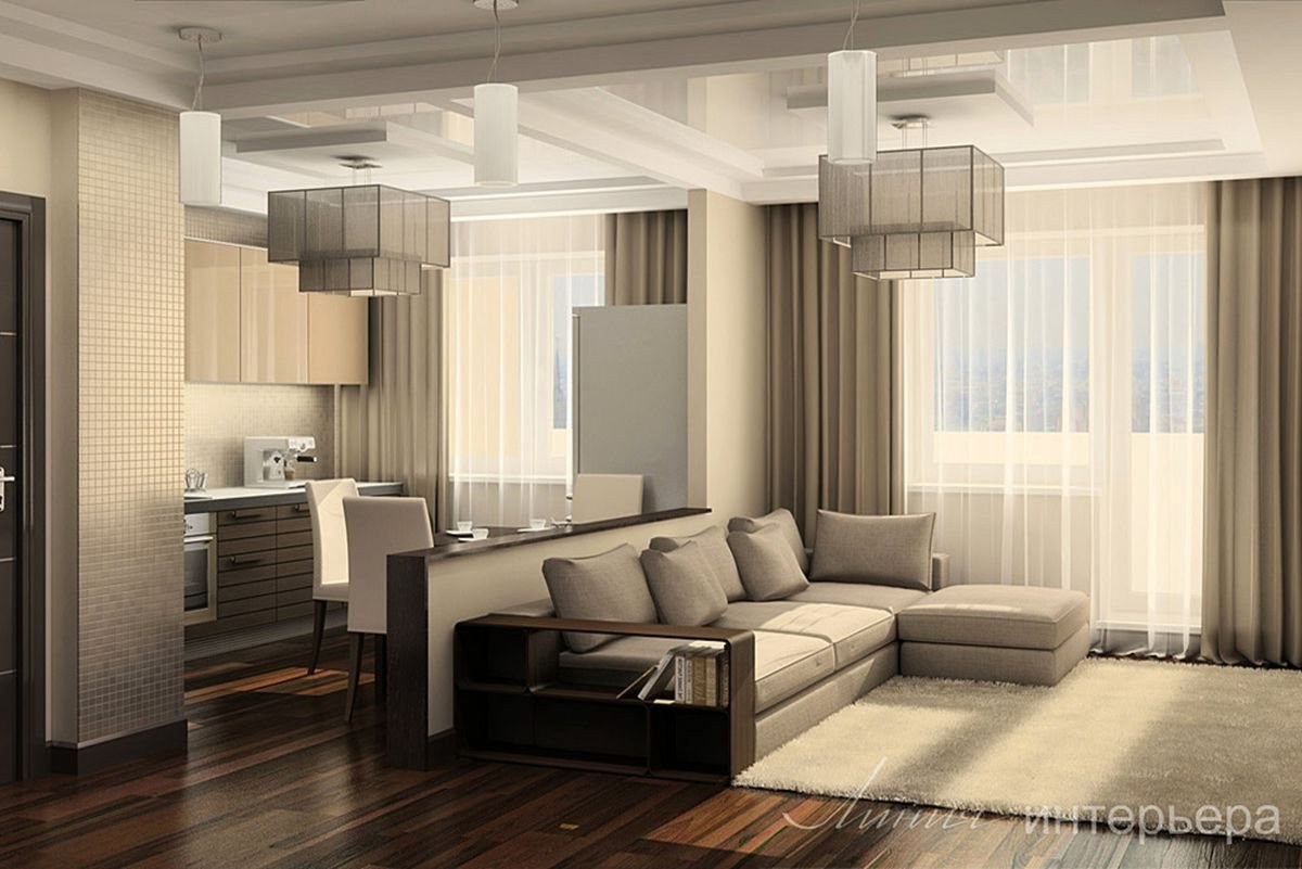 Интерьер кухни гостиной 30 кв