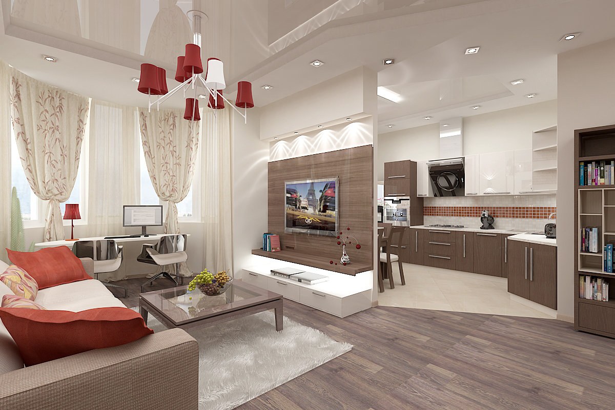 Планировка гостиной с кухней 40 кв