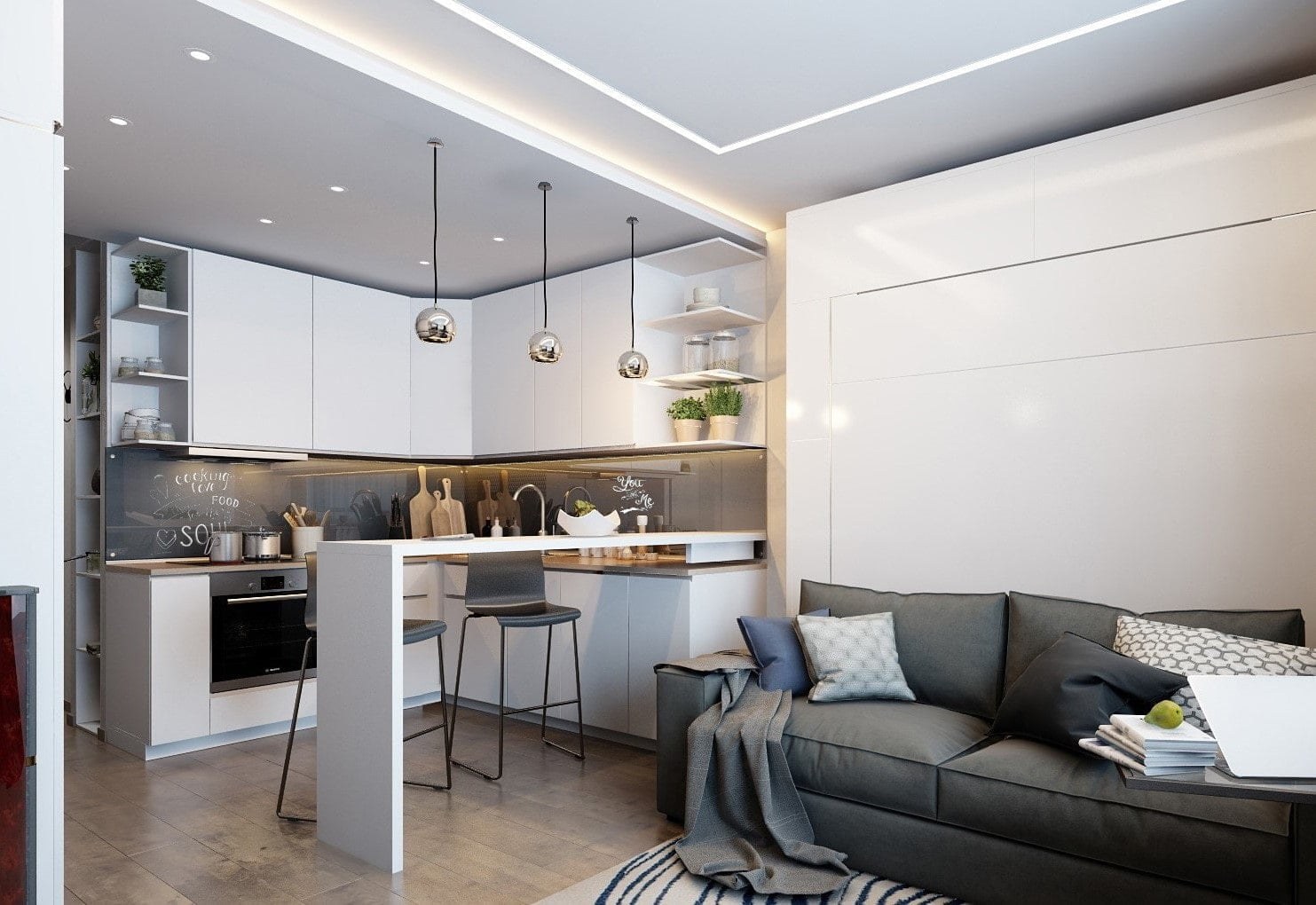 Кухня гостиная лофт 30 м2