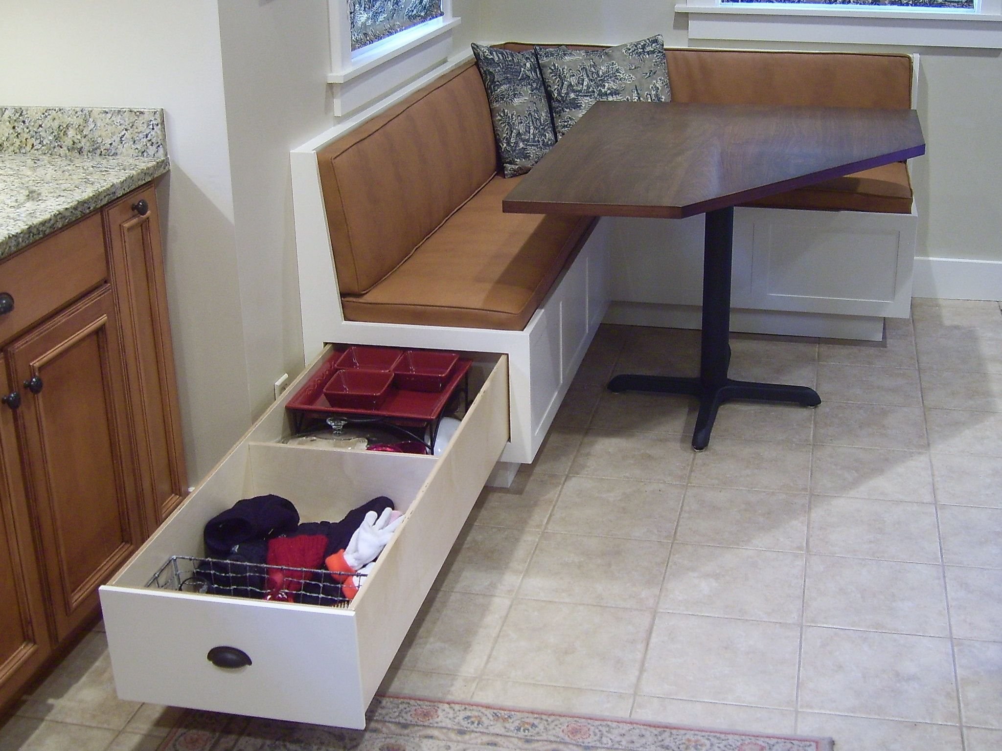 Кухонный уголок с ящиками для хранения для маленькой кухни