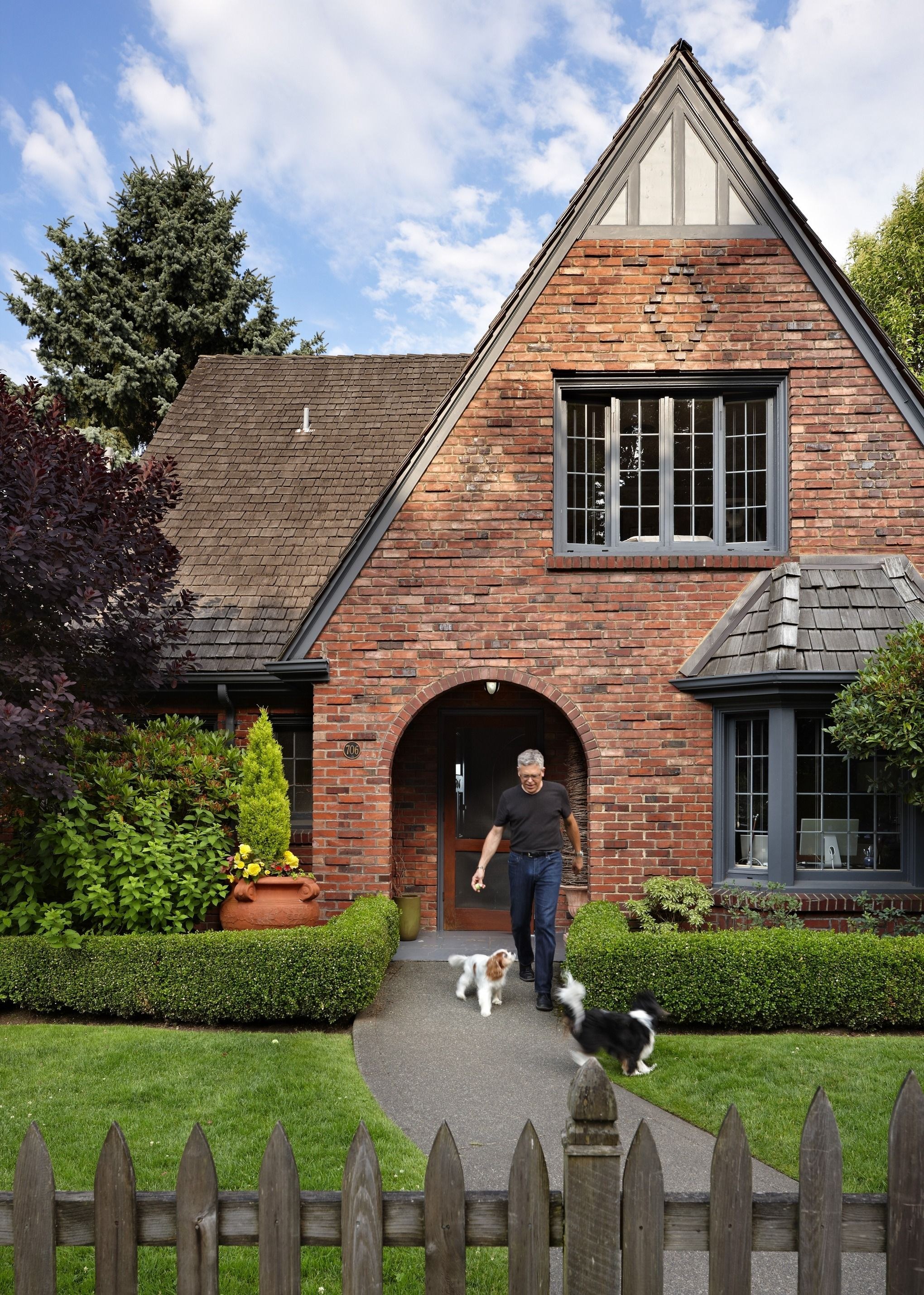 Дом архитектура в английском Тюдор стиле темный кирпич