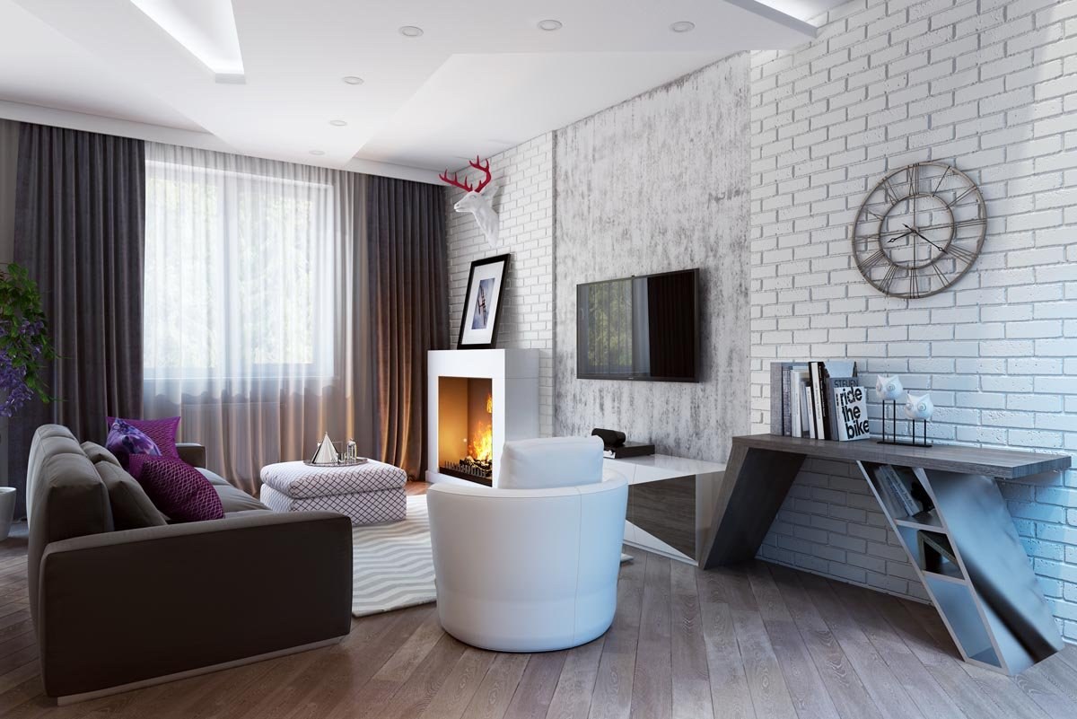 Серо белый интерьер гостиной