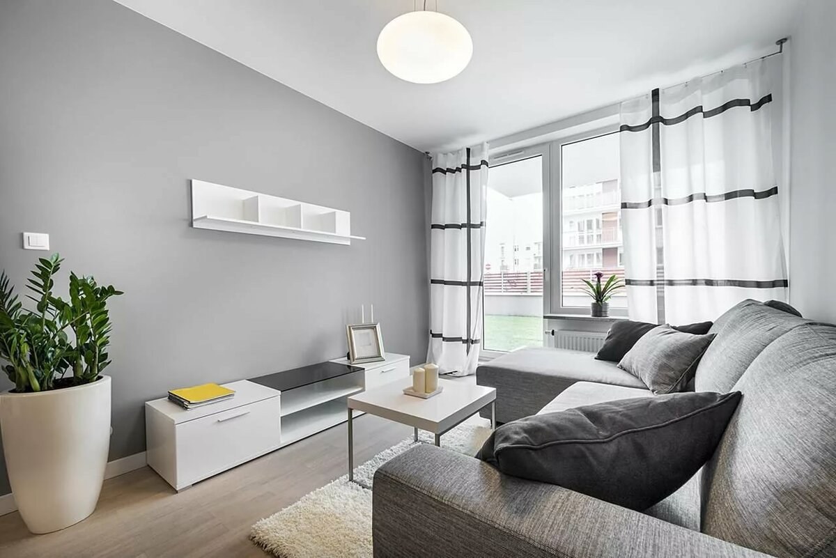 Светло серые стены в гостиной