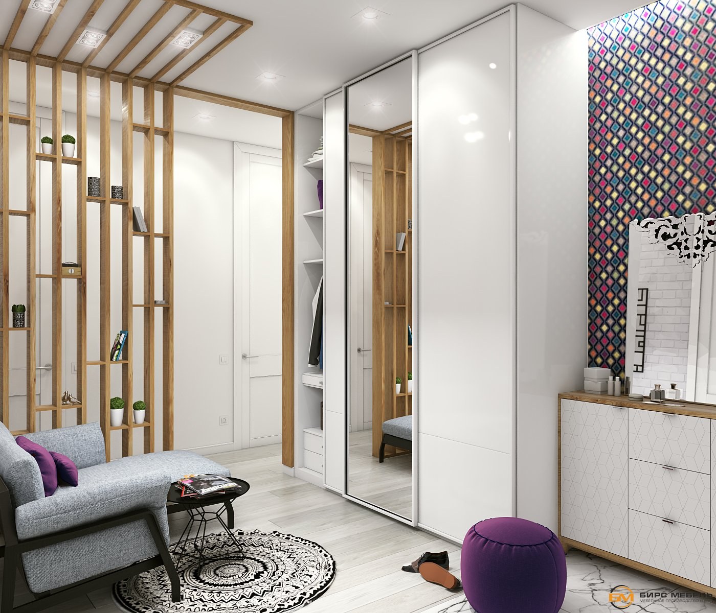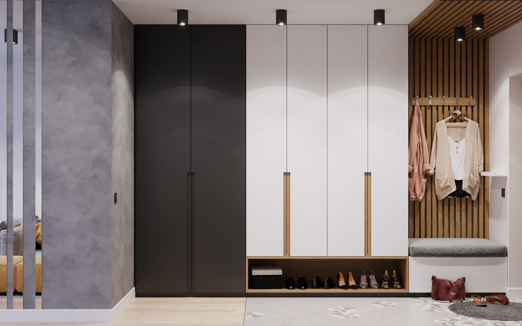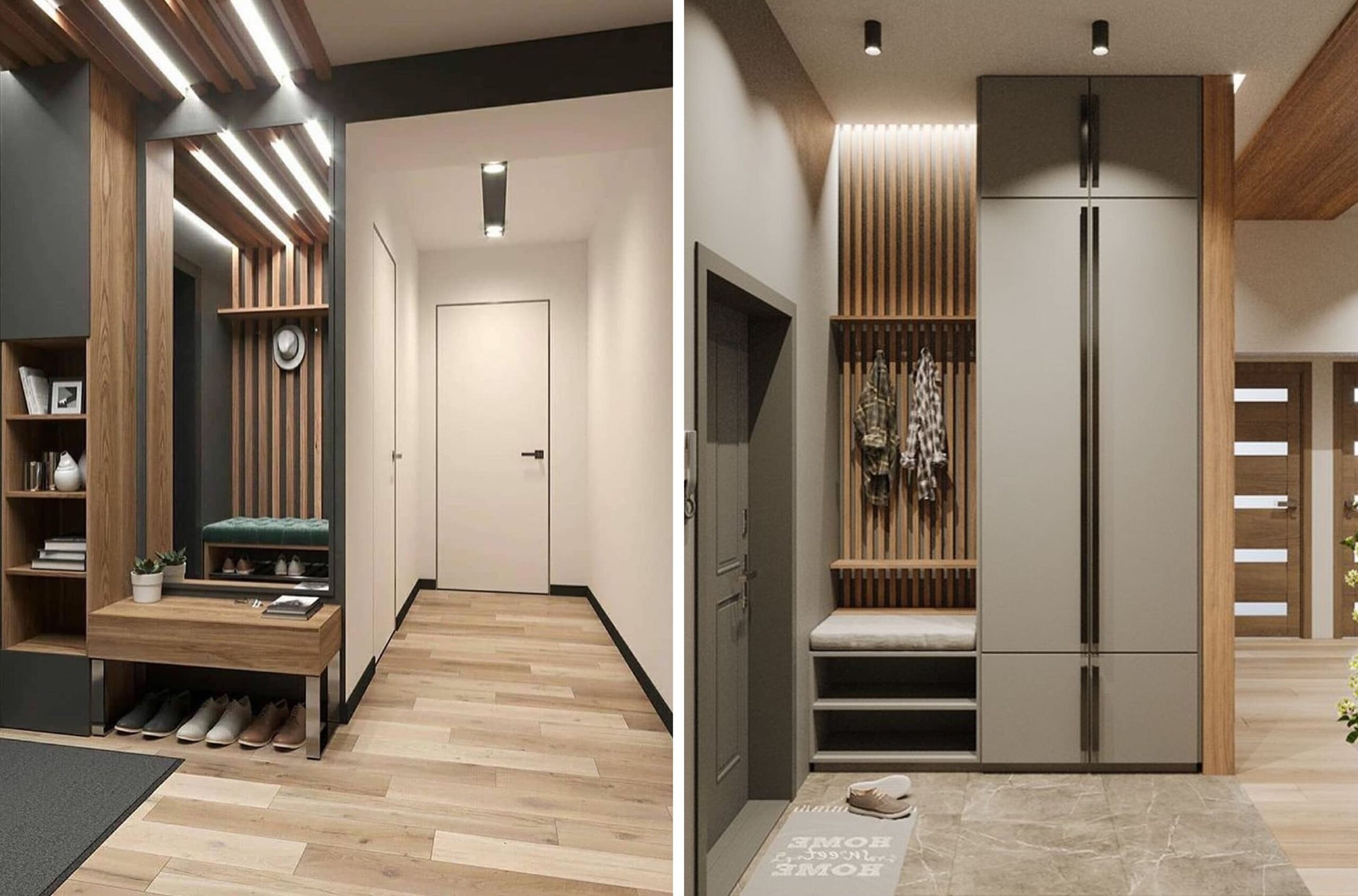 Прихожая в современном стиле с рейками