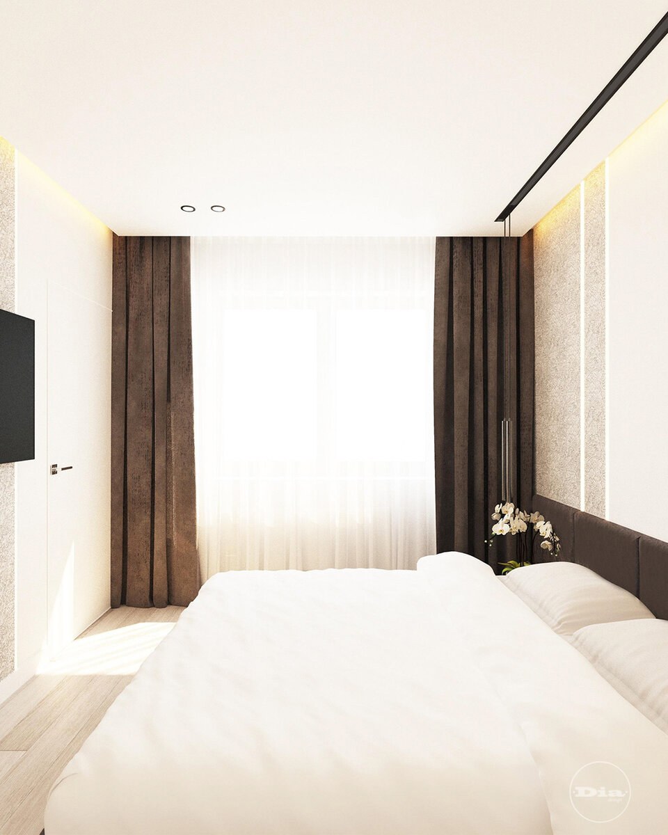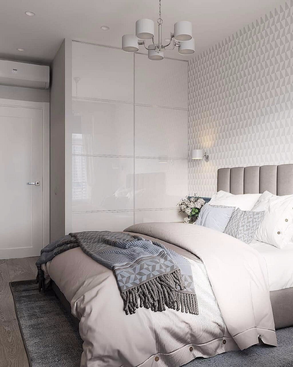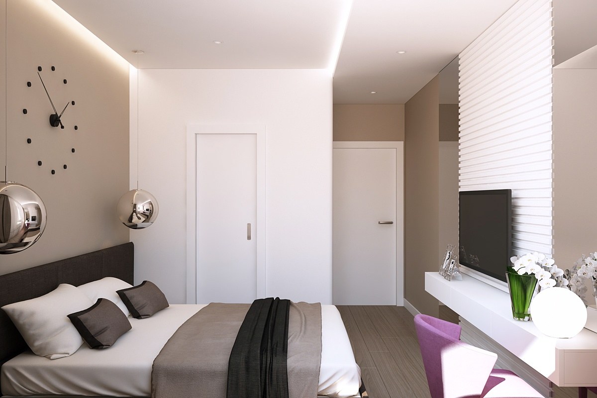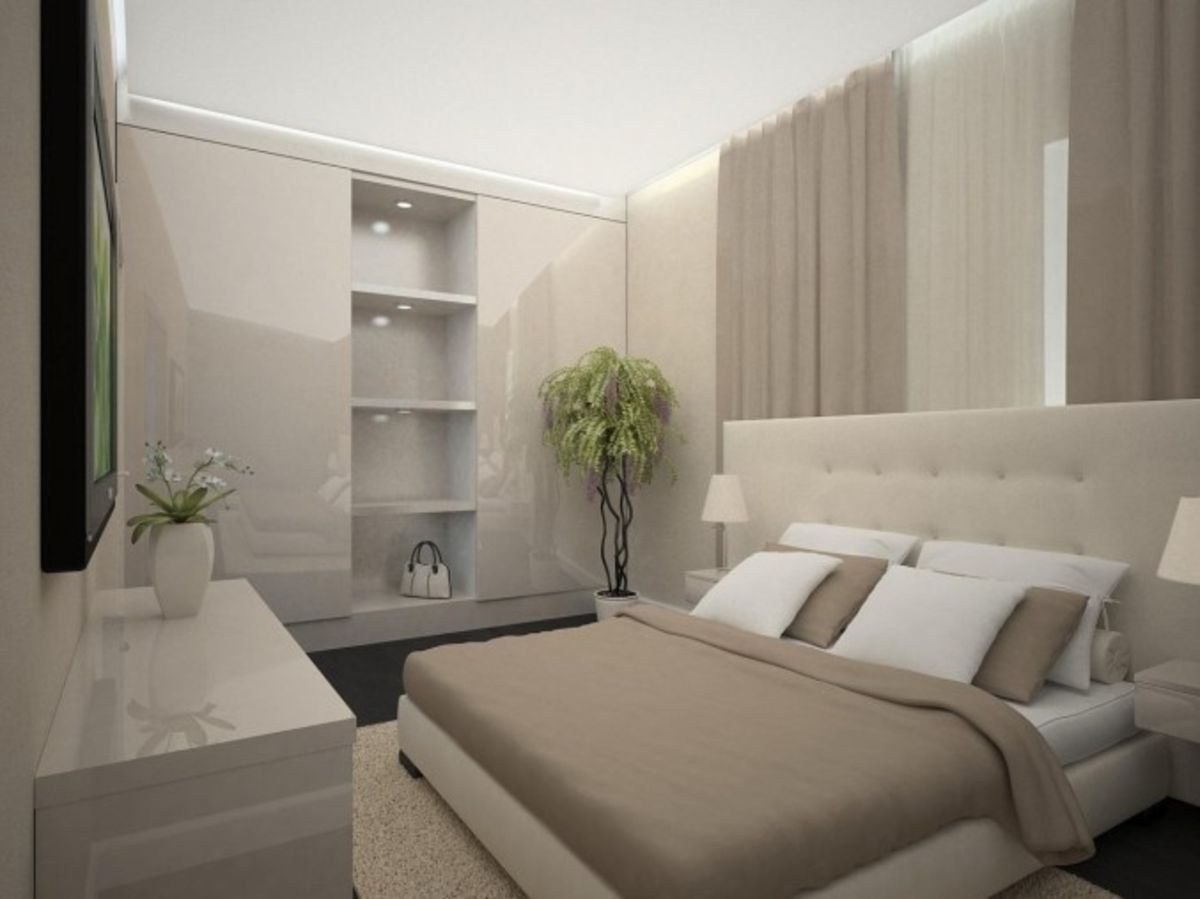 Спальня в современном стиле в светлых тонах 14 кв интерьер