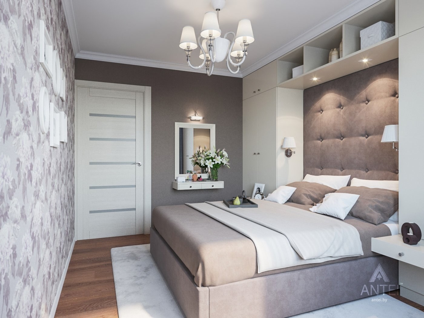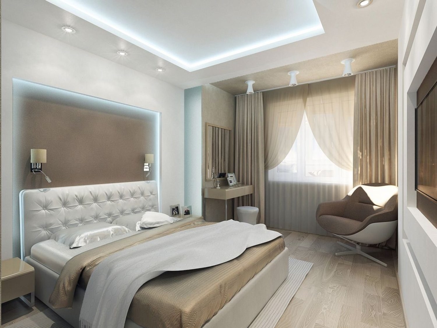 Дизайнерская спальня в светлых тонах