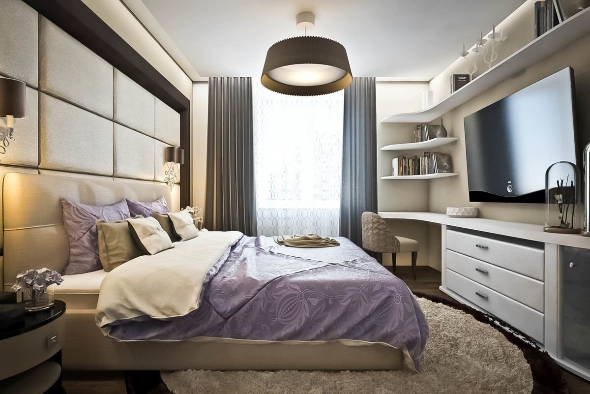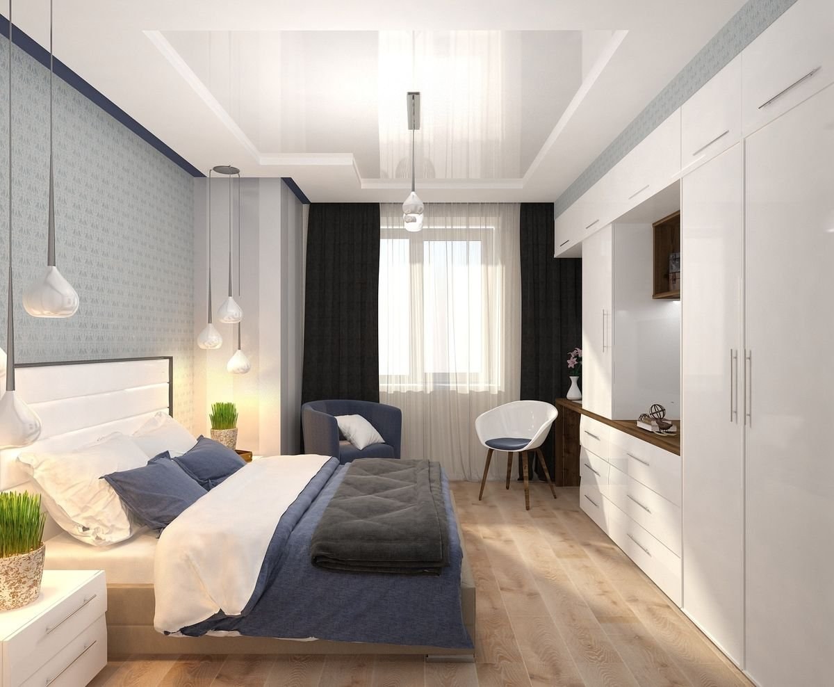 Дизайн спальни 17кв прямоугольная