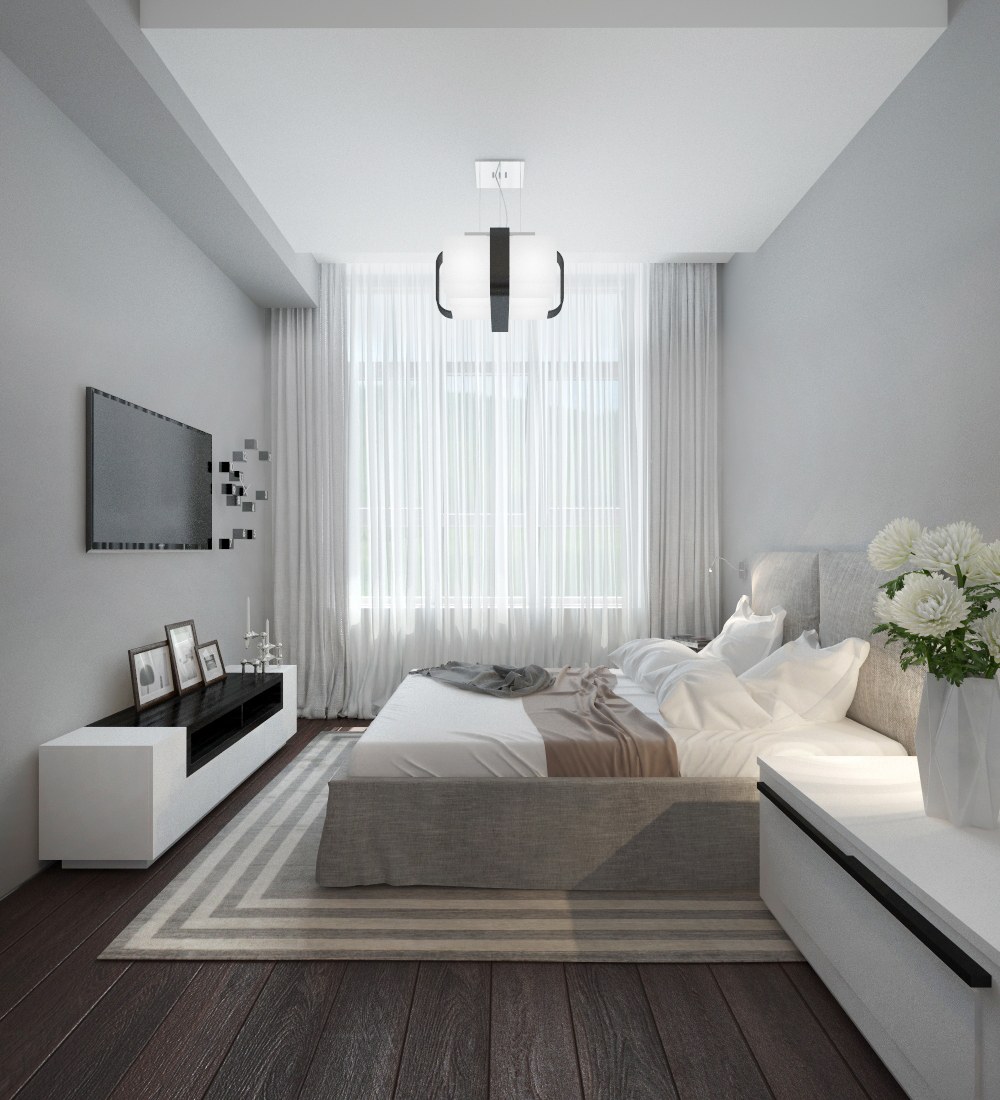 Интерьер прямоугольной спальни