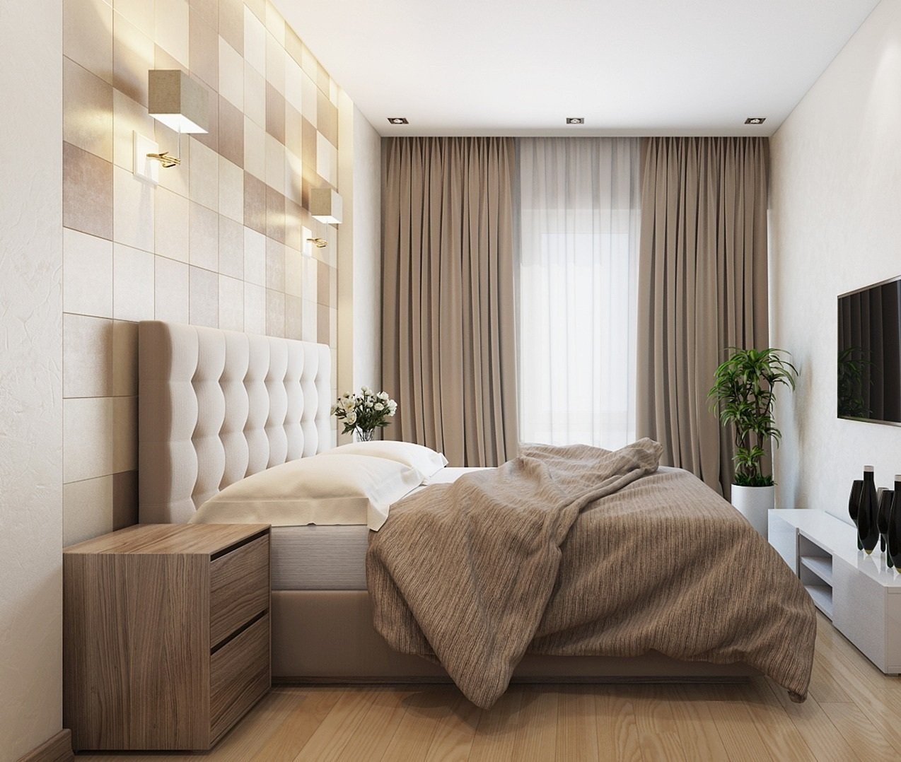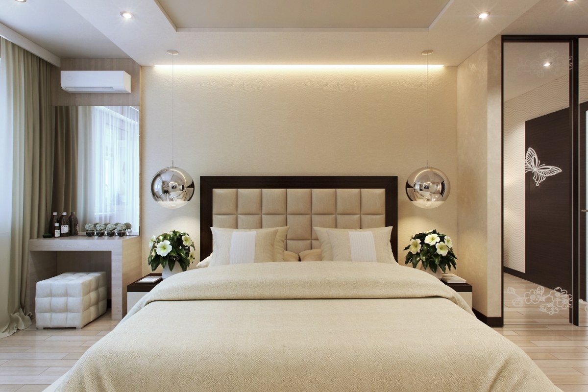 Спальня 15 кв.м. в бежевых тонах