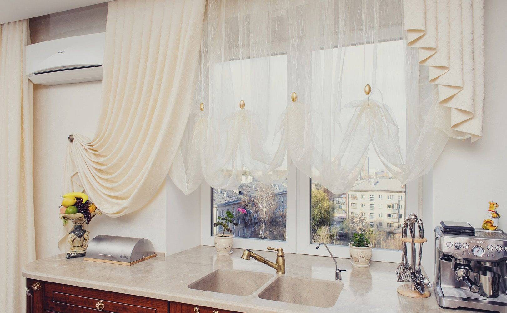 Тюль на кухню до подоконника в современном стиле (55 фото)