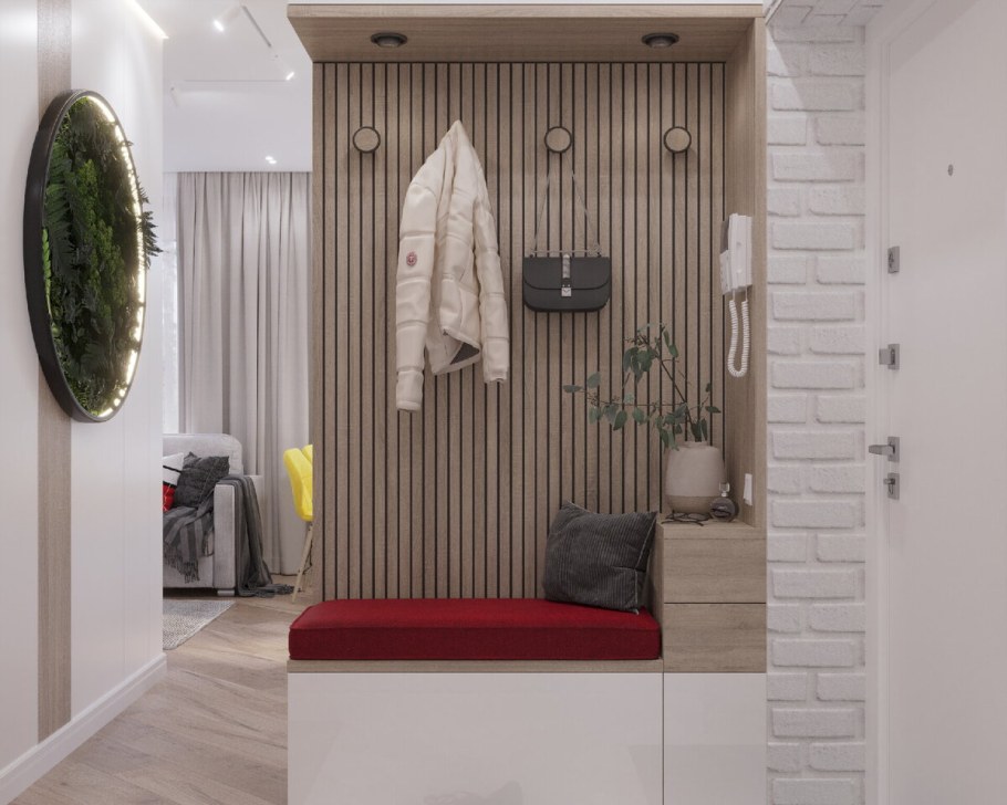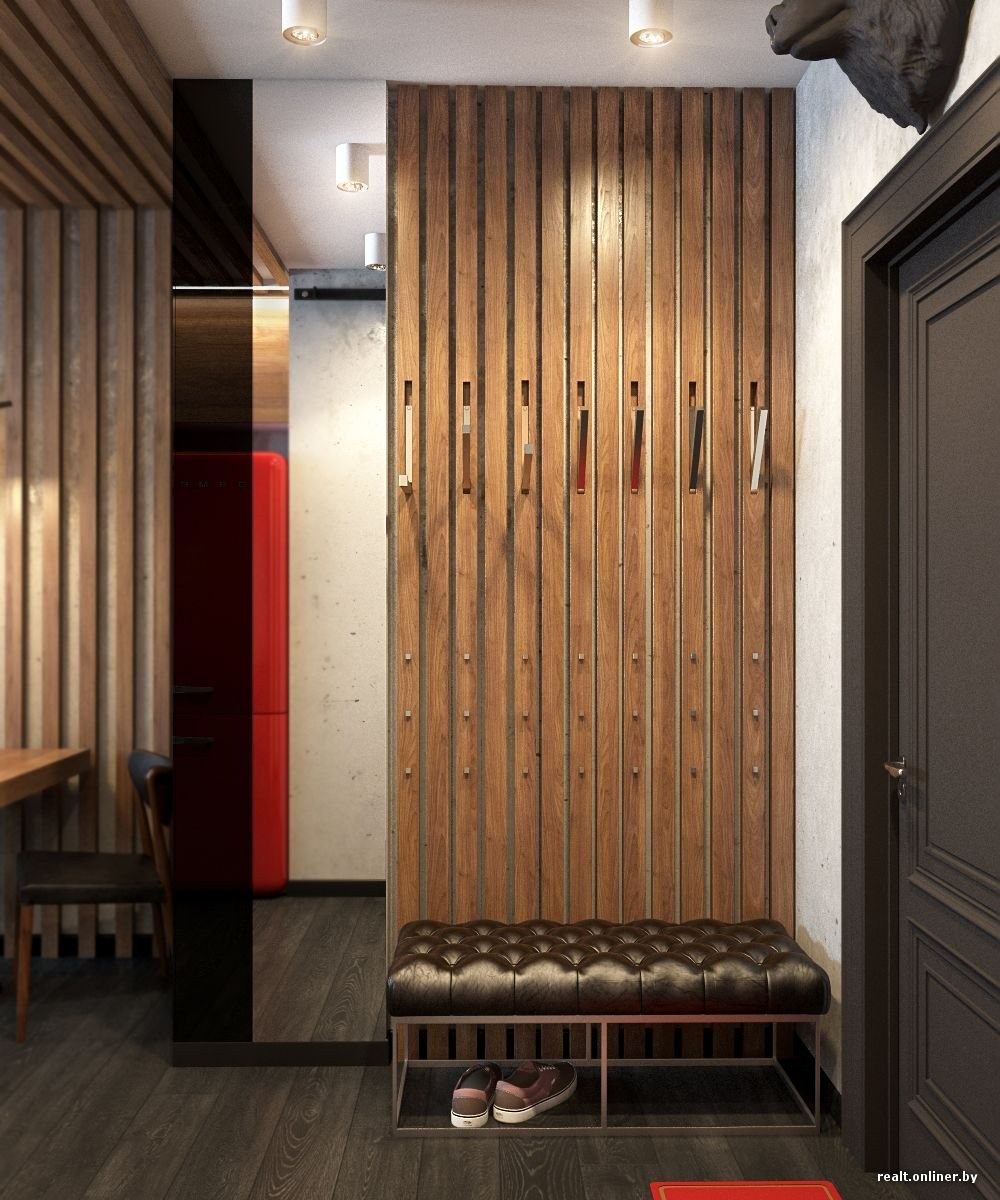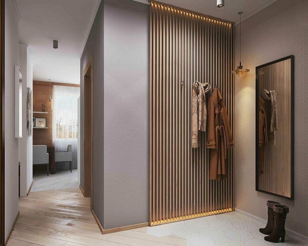 Прихожая с деревянными рейками