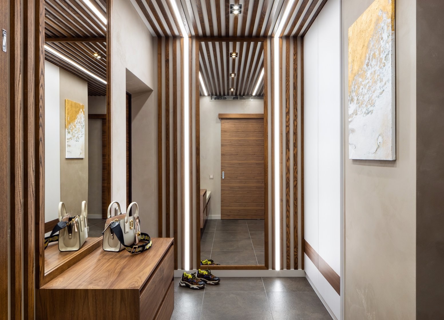 Прихожая в современном стиле с рейками