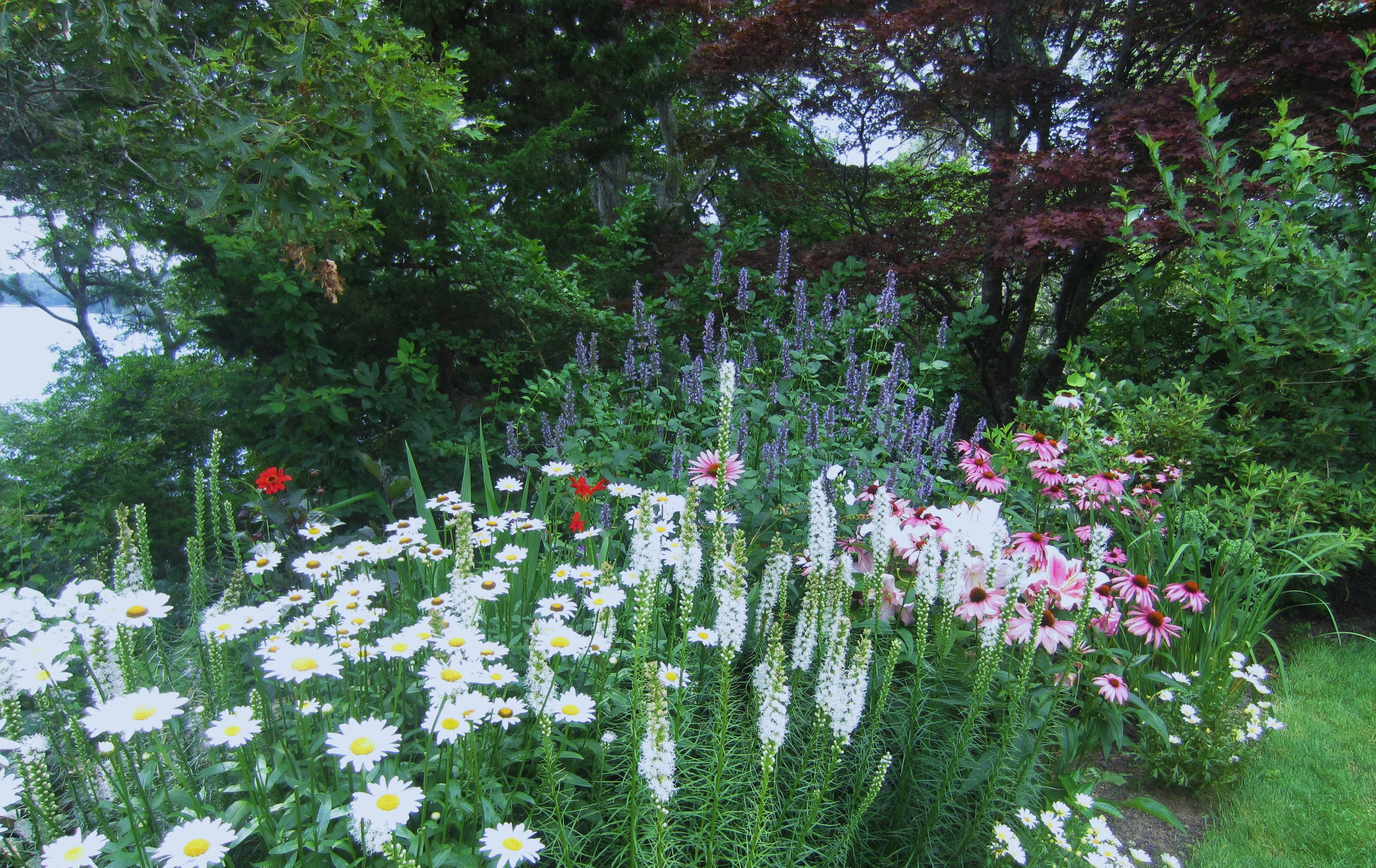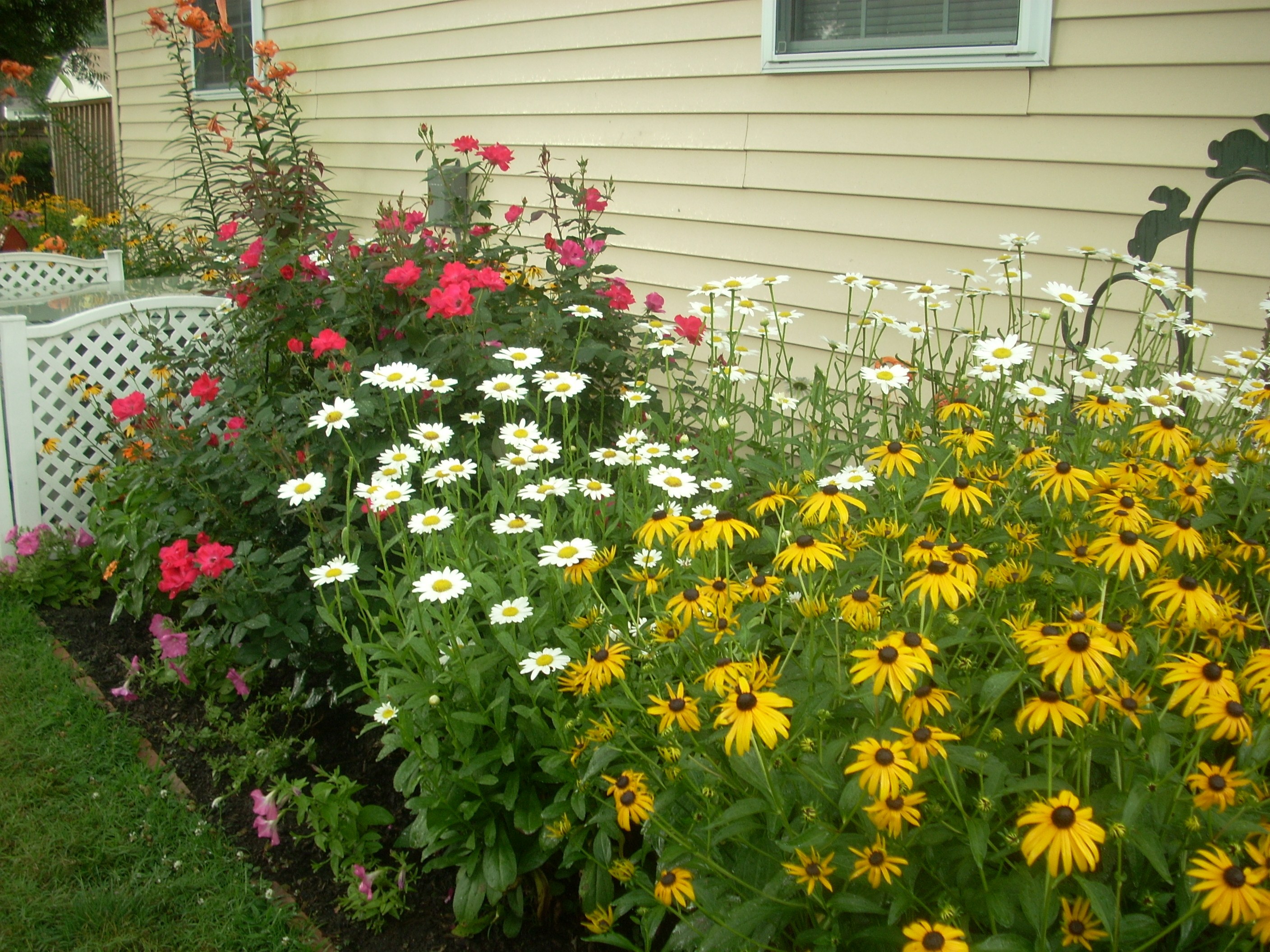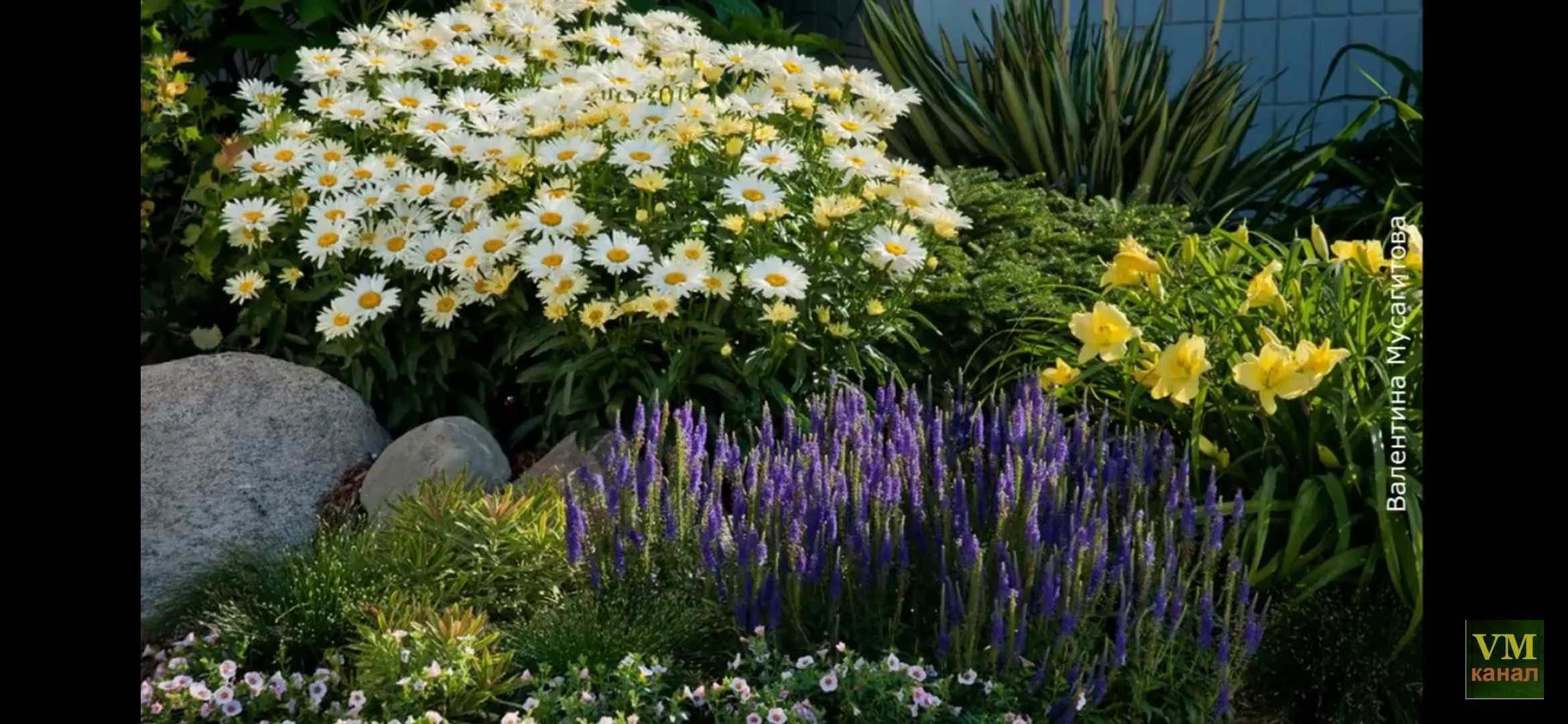 Клумба Мальва дельфиниум Хоста Флоксы рудбекия