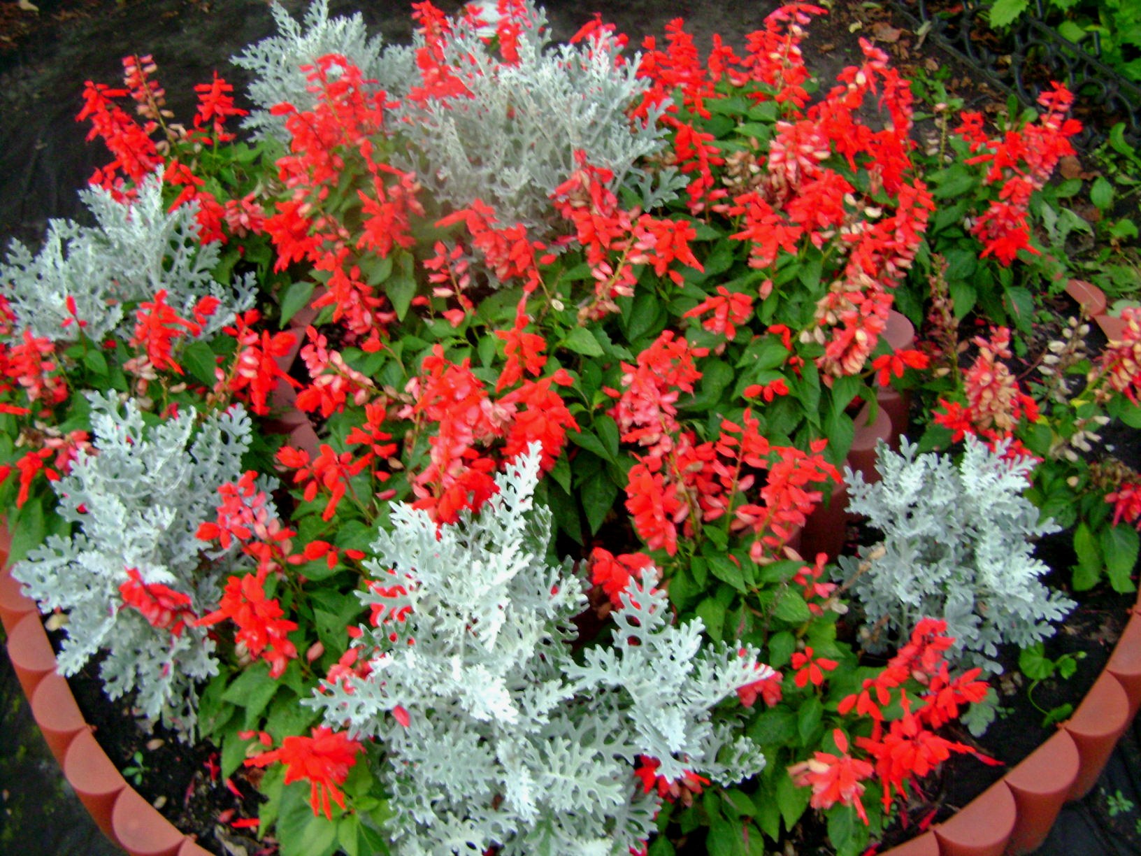Клумба бегония, цинерария, Сальвия
