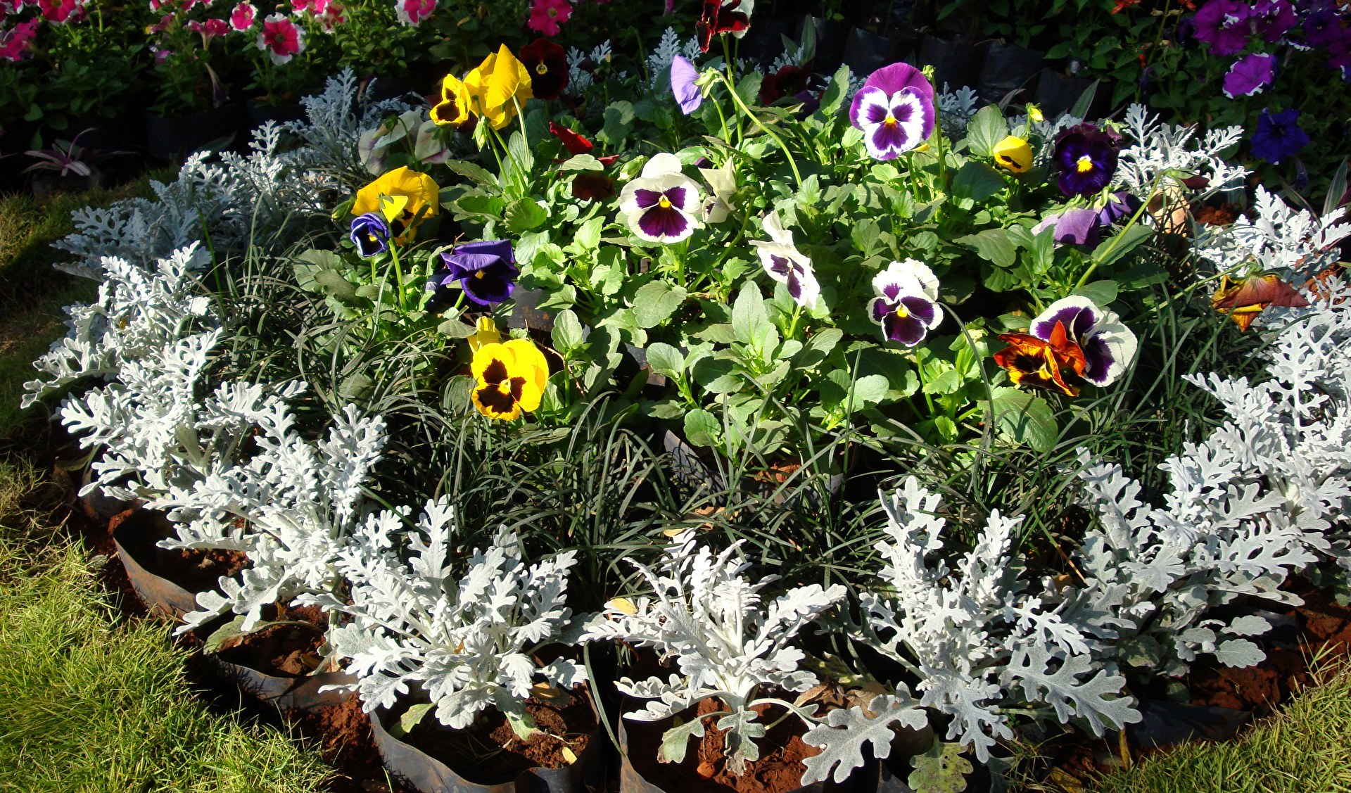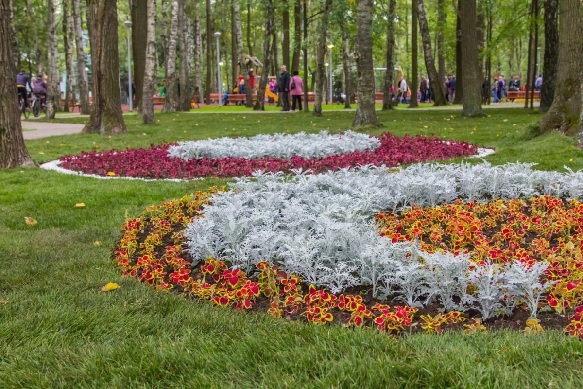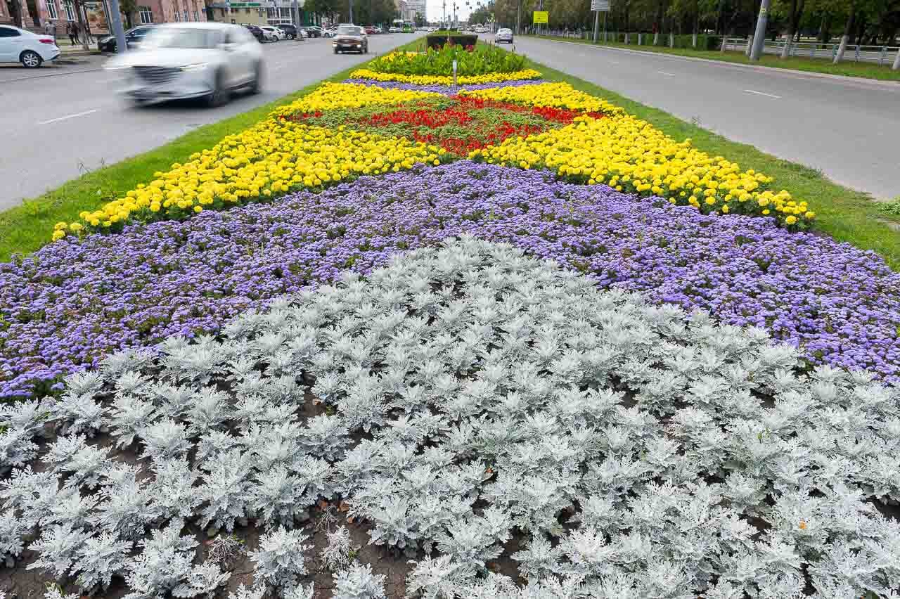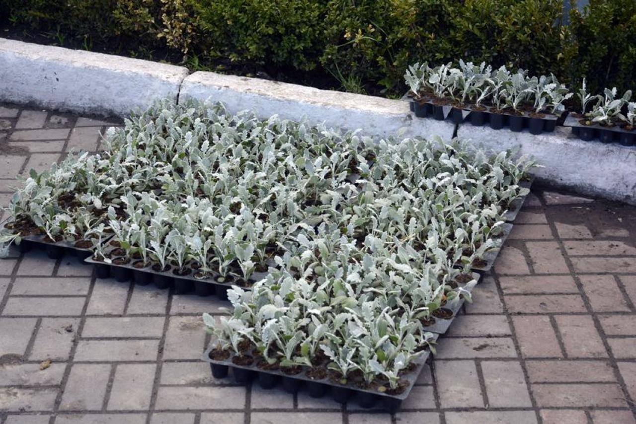 Клумбы с цинерарией серебристой