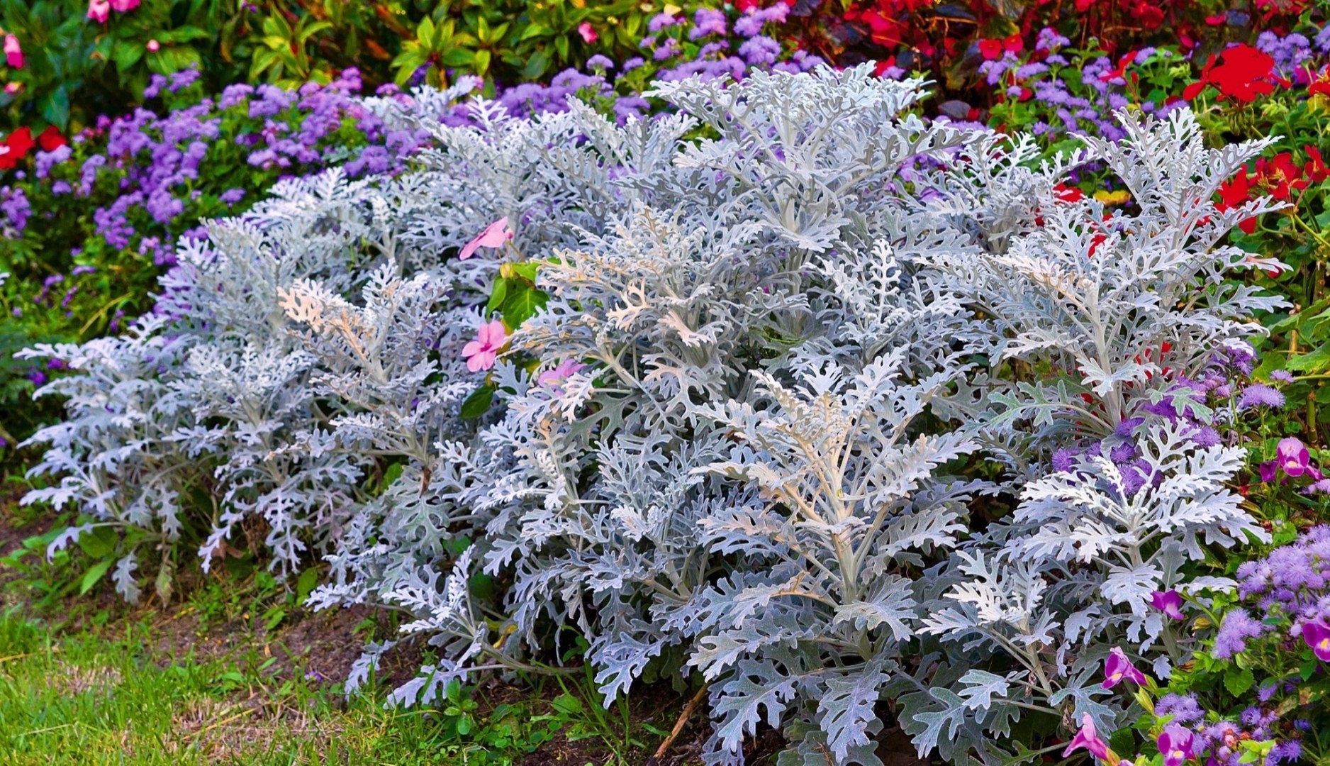 Цинерария Сильверадо в клумбе