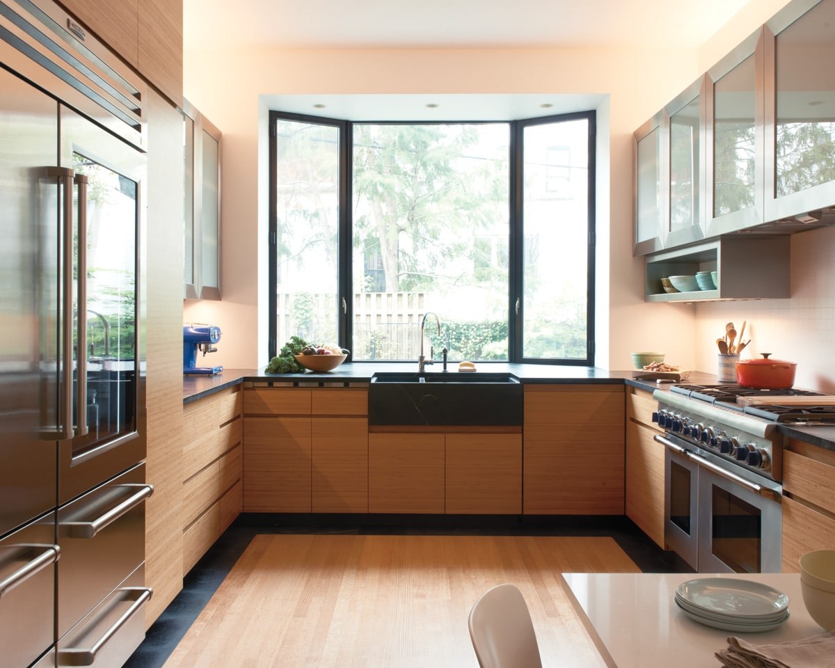 Дизайн небольшой кухни в частном доме с окном (59 фото)