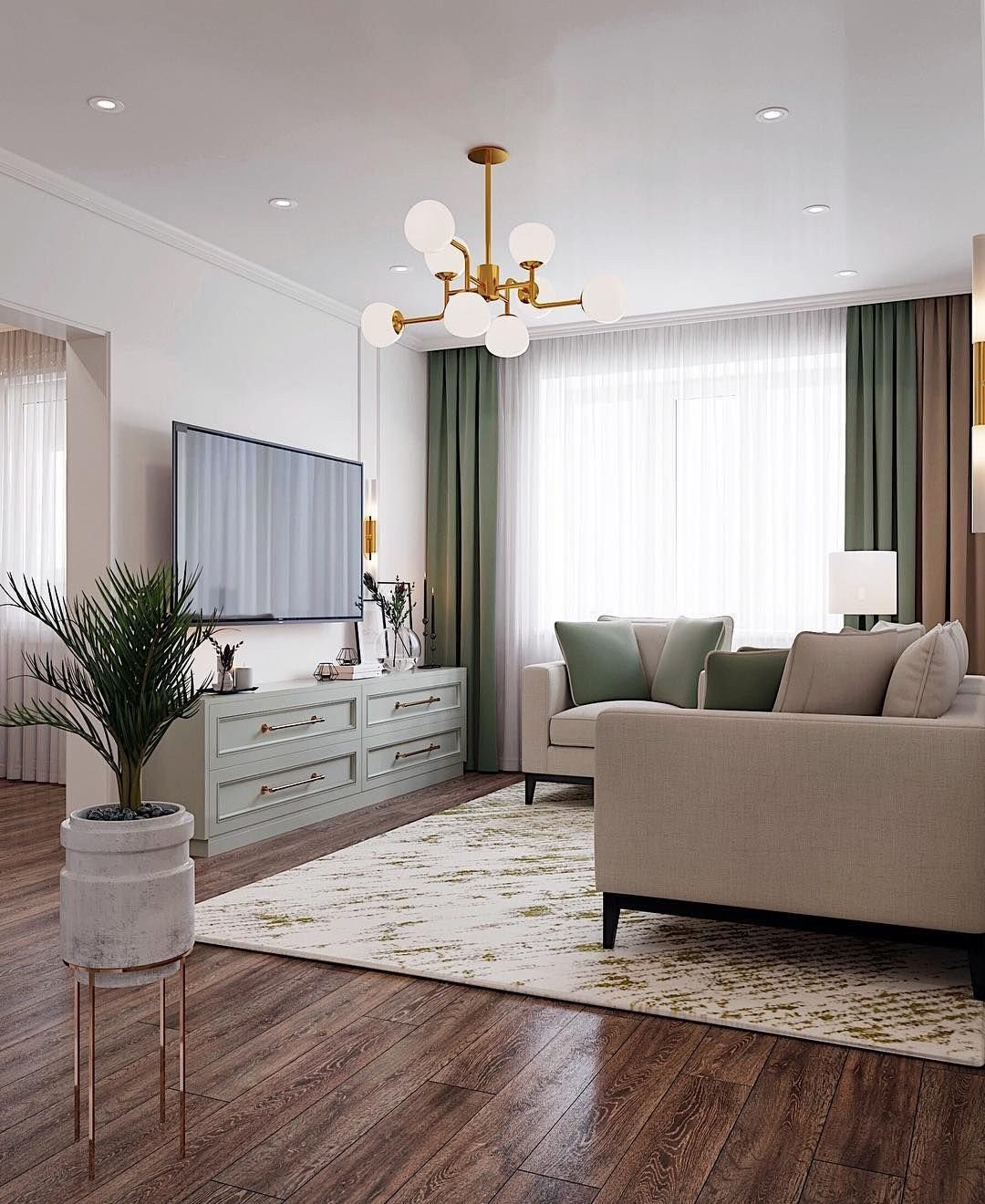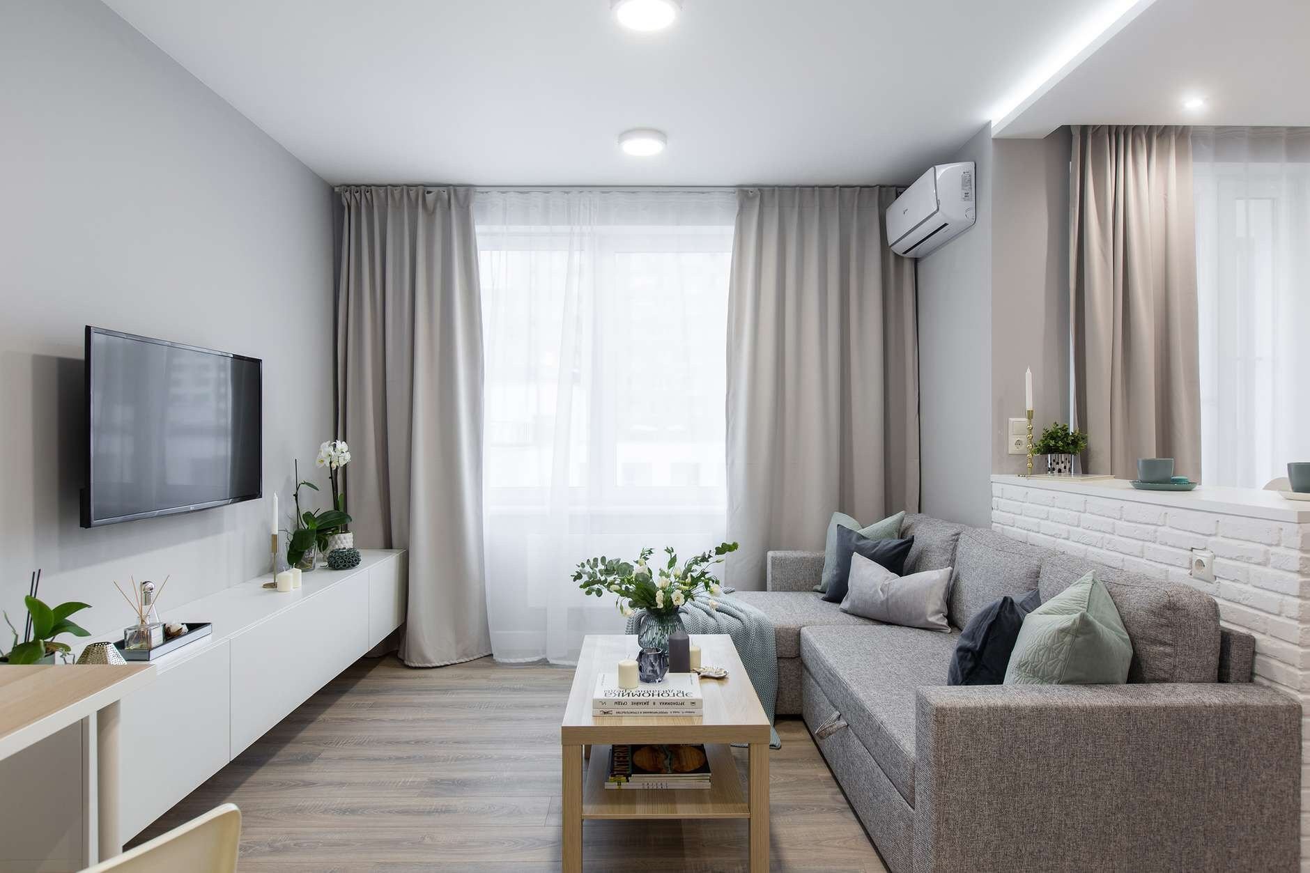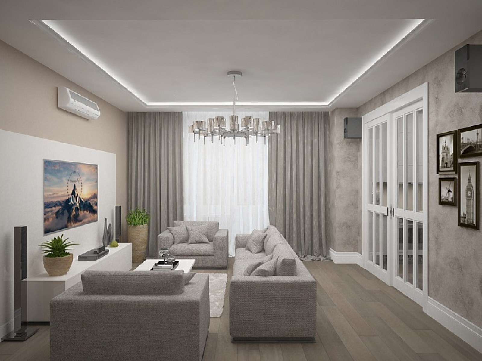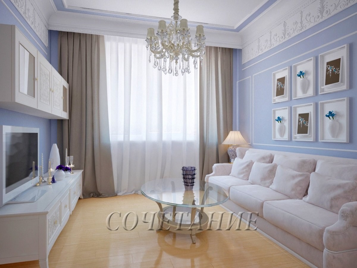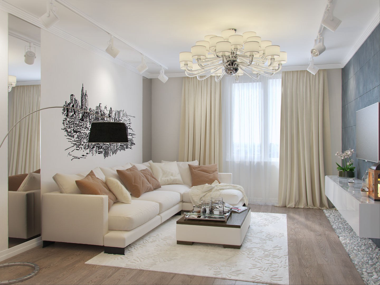 Интерьер гостиной 18 кв.м прямоугольной формы