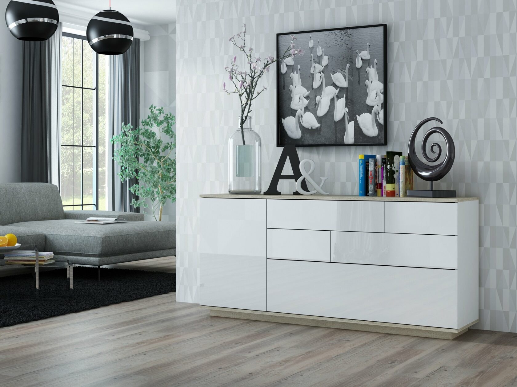 Комод 2+1d4s 200см бетон /белый глянец - мебель-4k