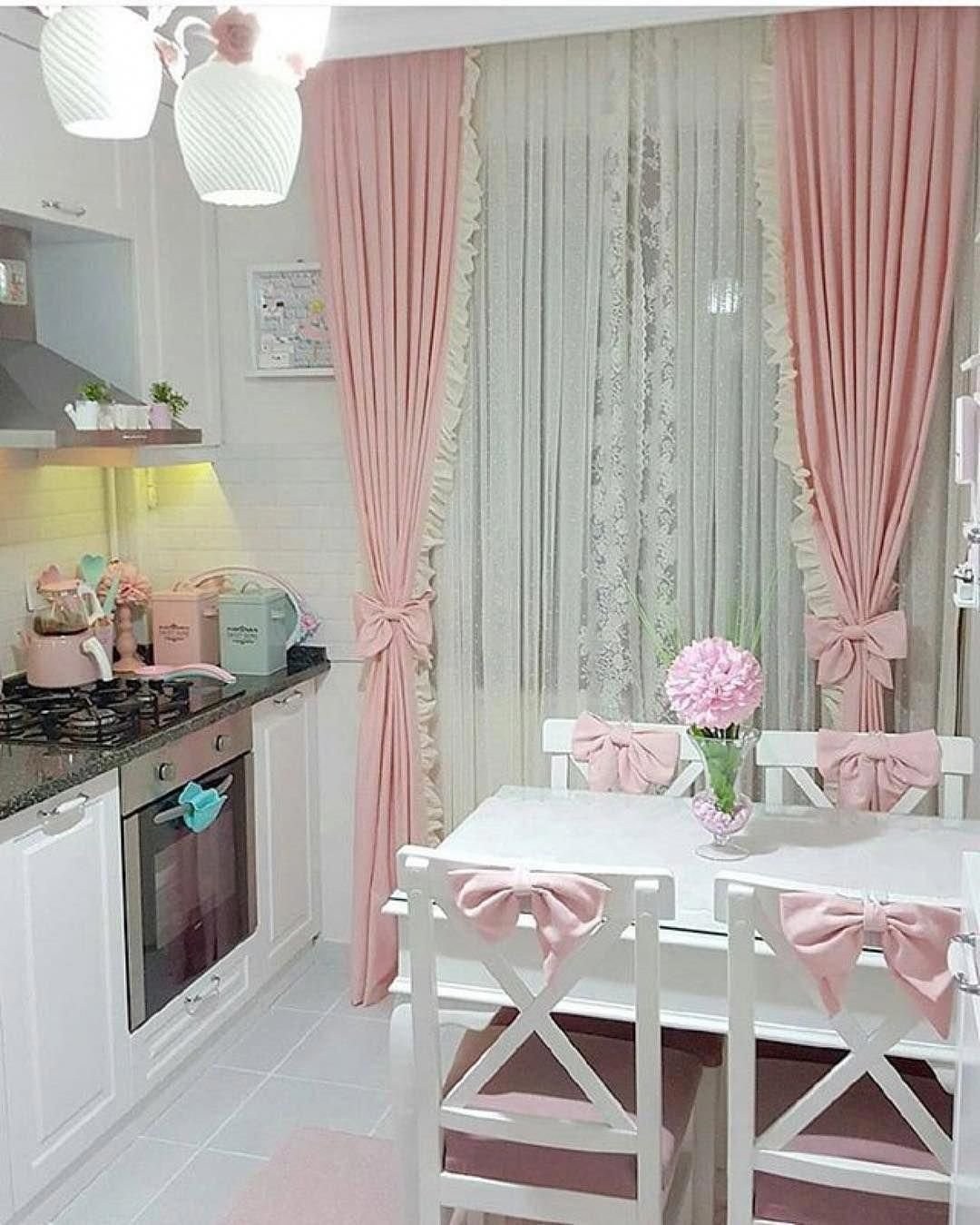 Розовые шторы на кухню