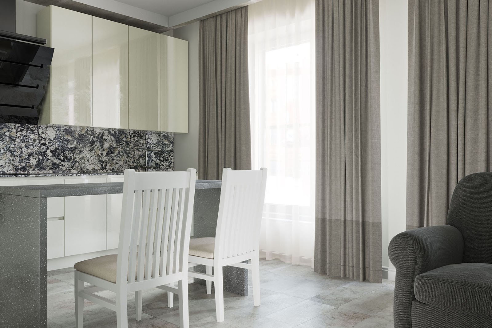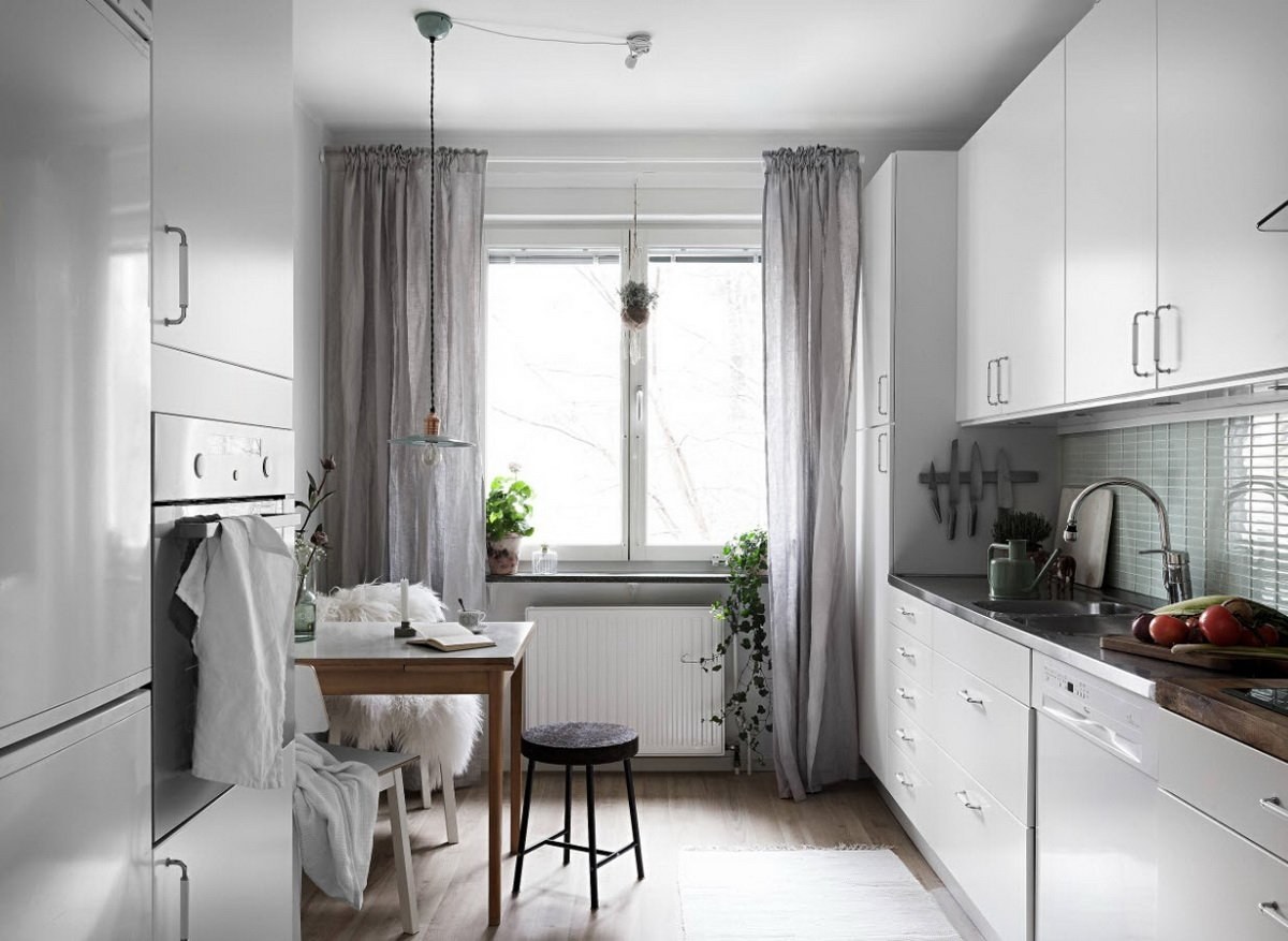 Шторы на серой кухне интерьер (56 фото)