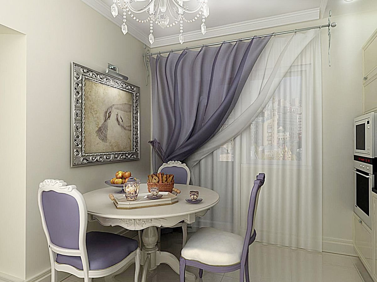 Сиреневые шторы на кухню
