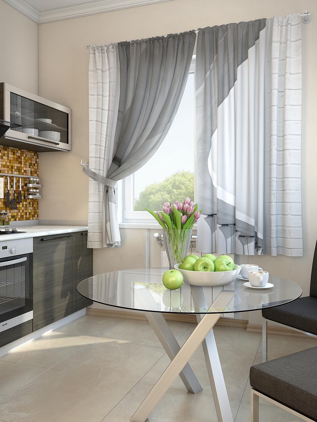 Шторы на серую кухню в современном стиле