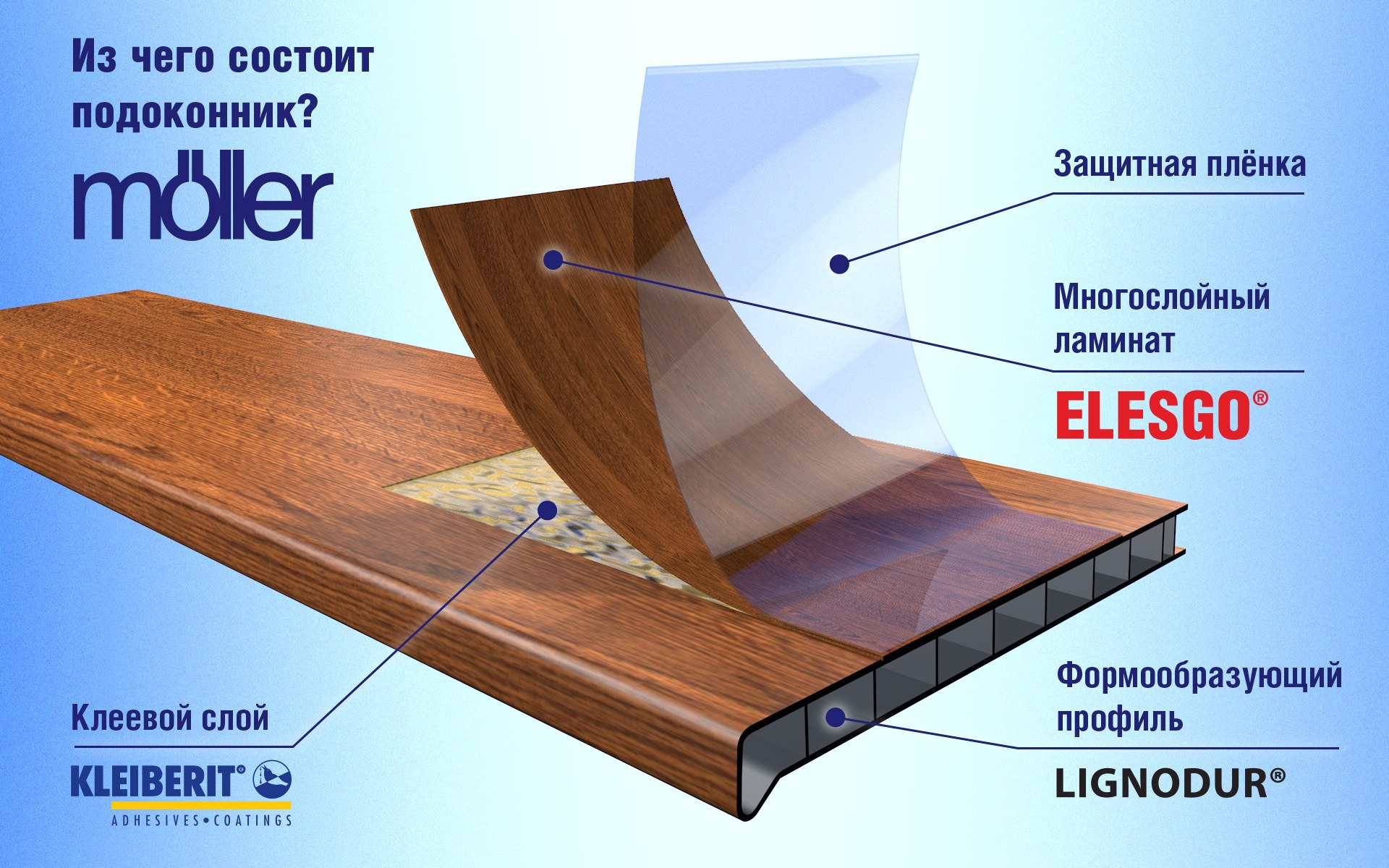 Подоконник ПВХ Moeller ld40 - белый clean Touch