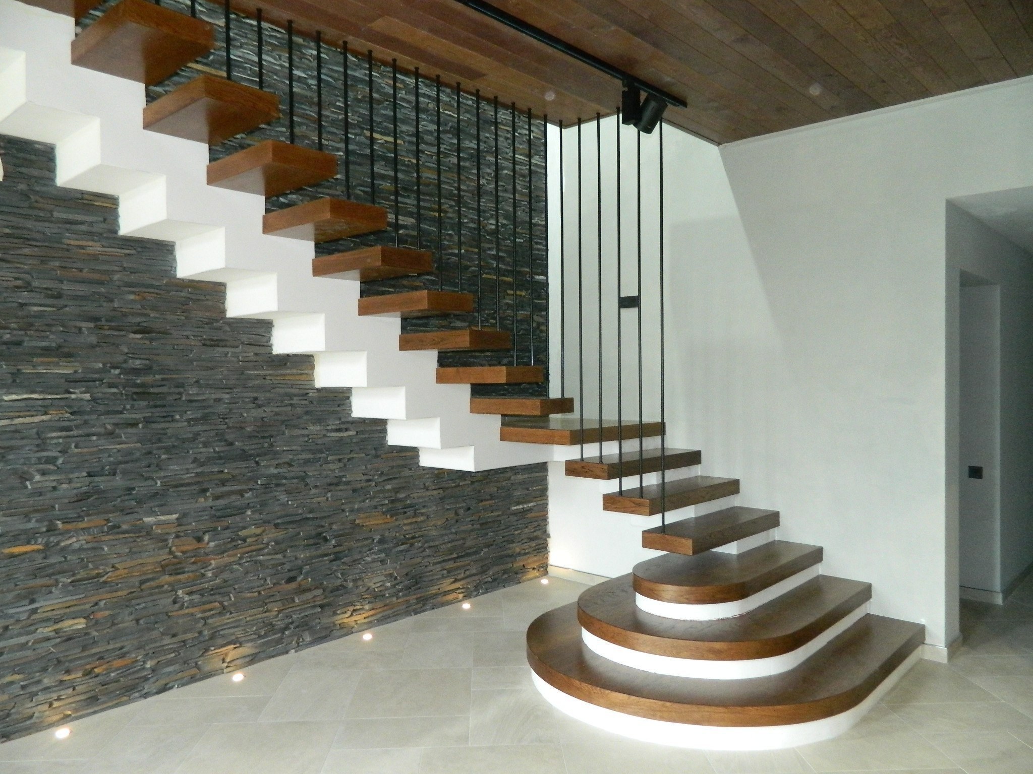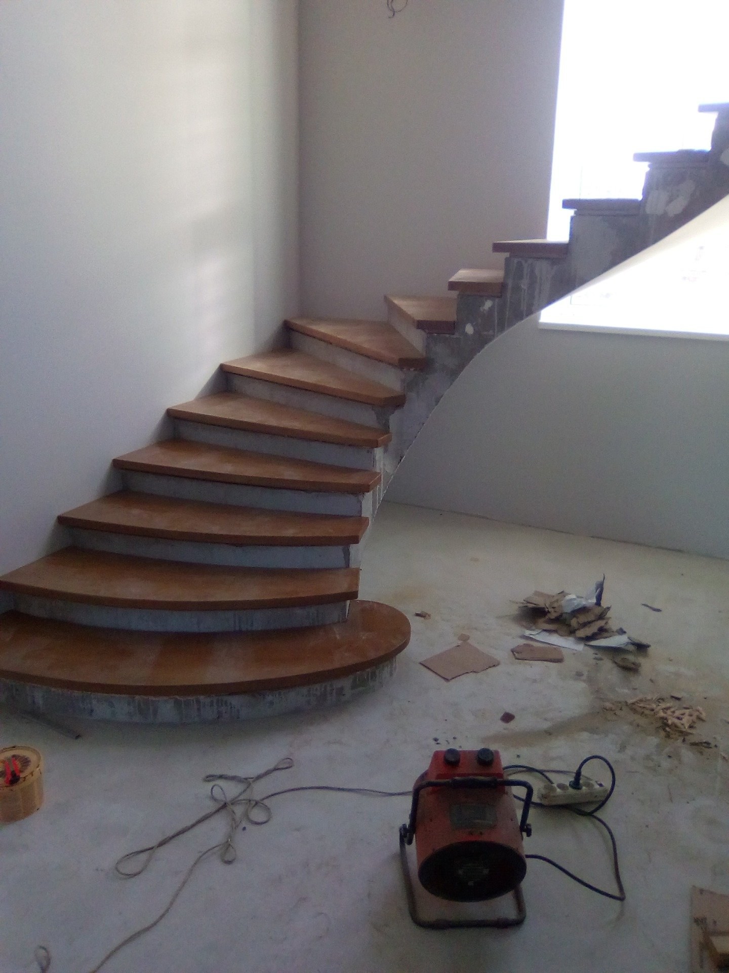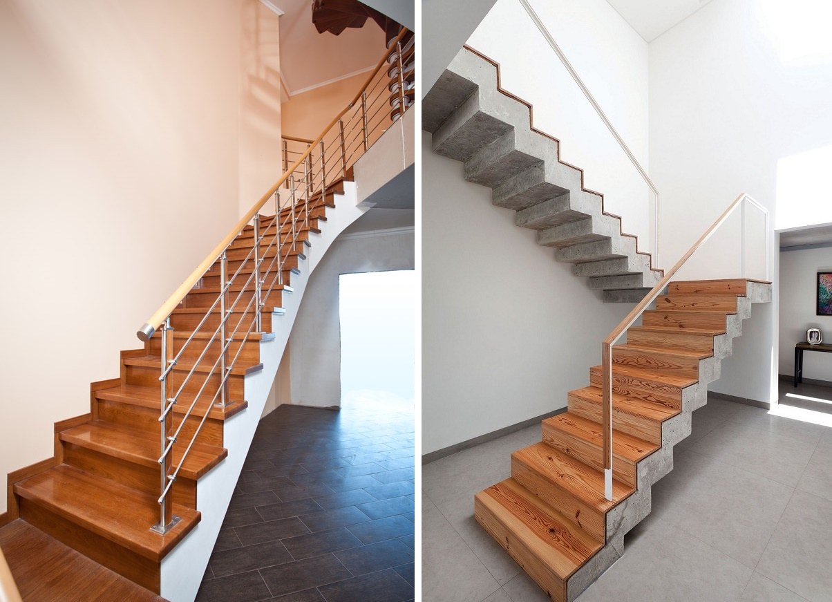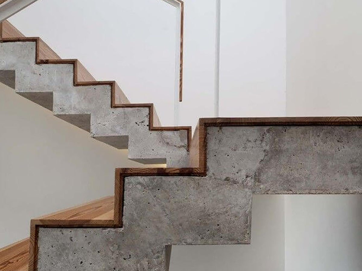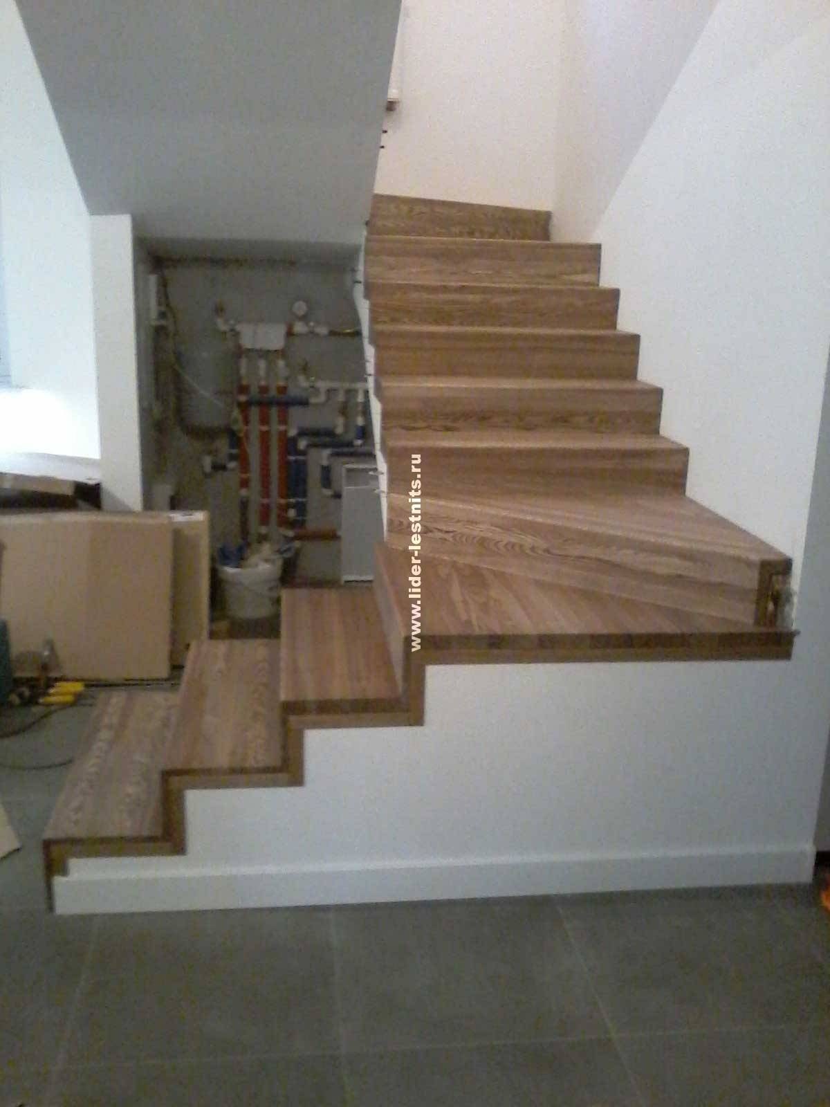Отделка лестницы из бетона деревом в частном доме (56 фото)