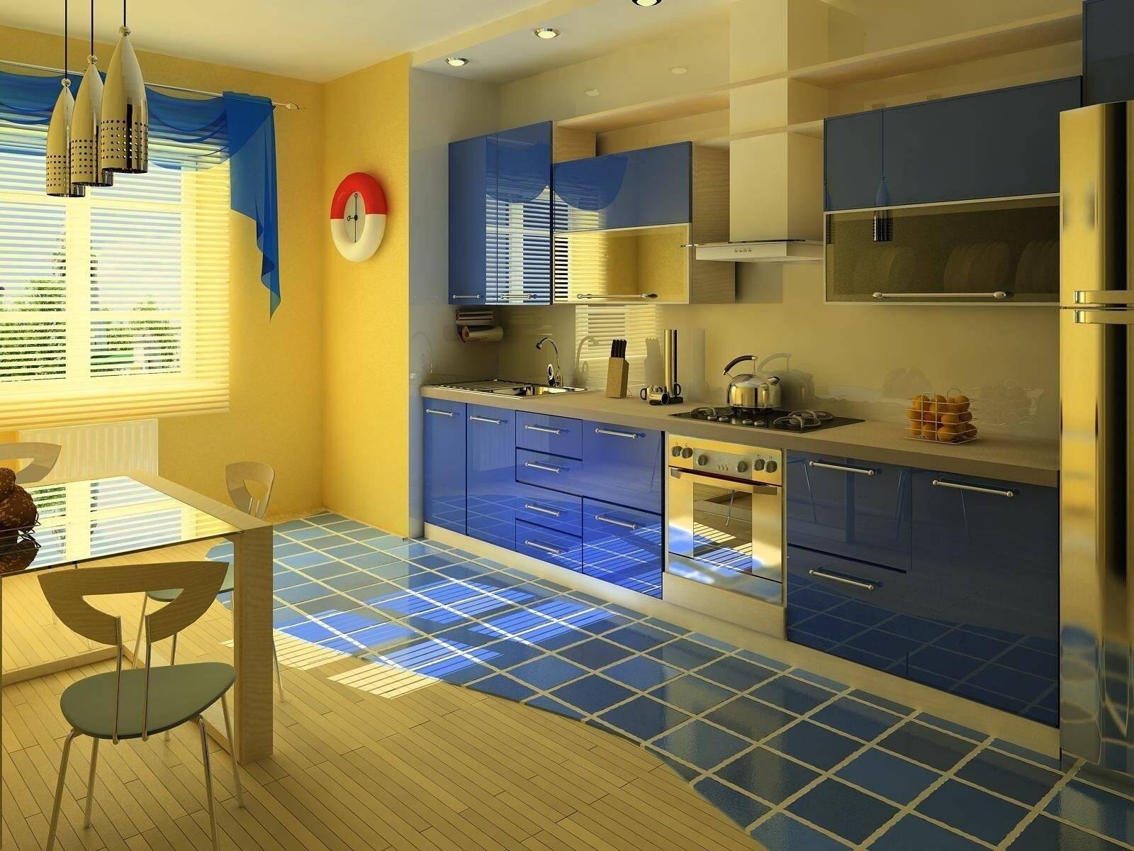 Кухня в сине желтом цвете