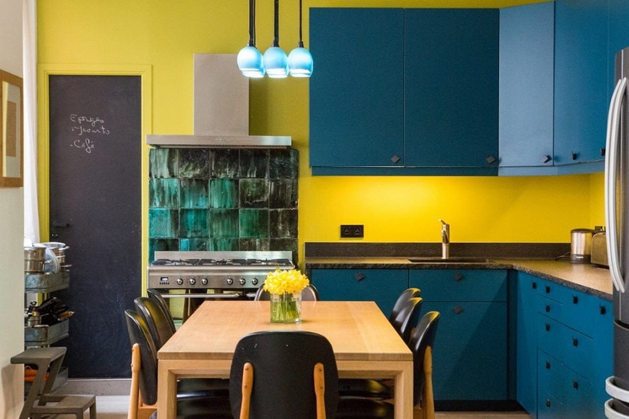 Кухня в желто голубом цвете