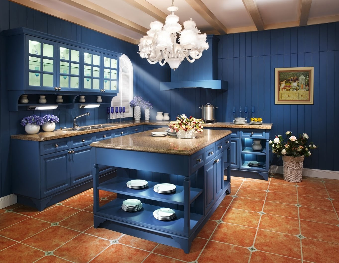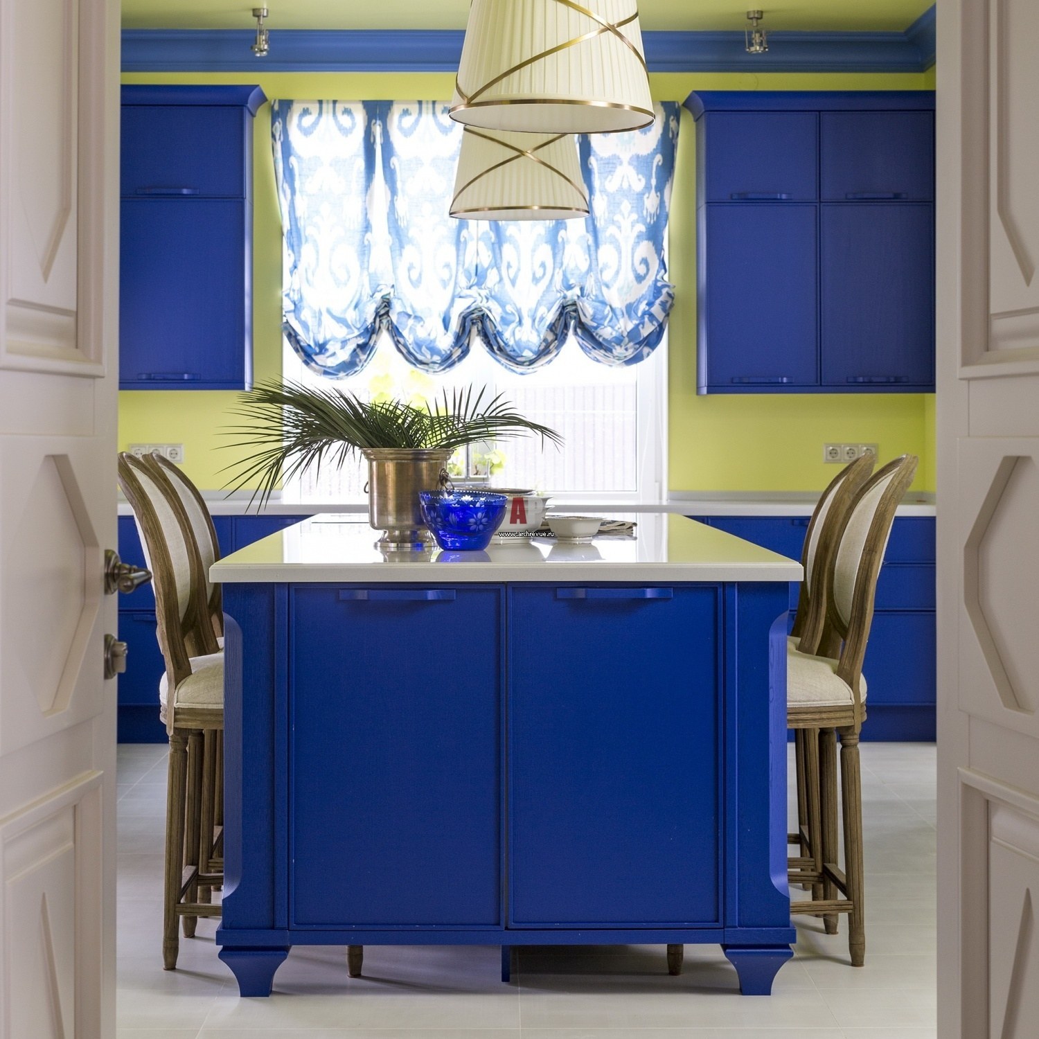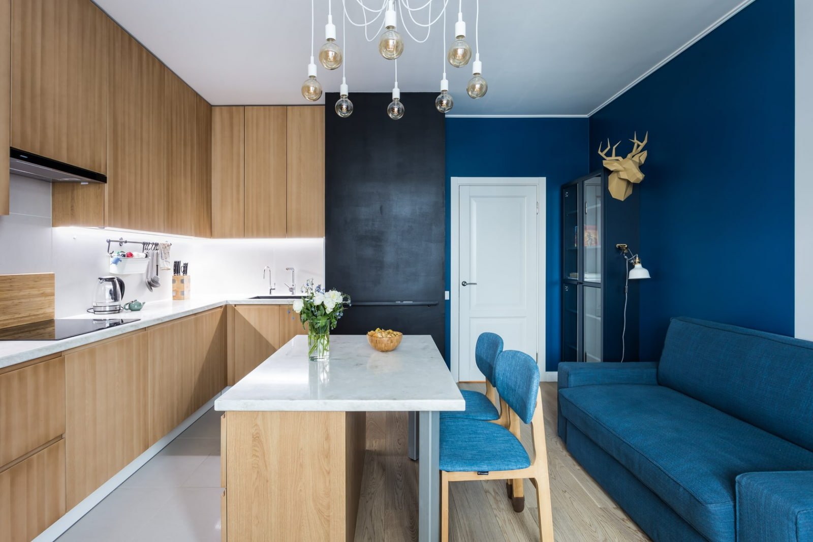 Синий цвет в интерьере кухни с чем сочетается (56 фото)