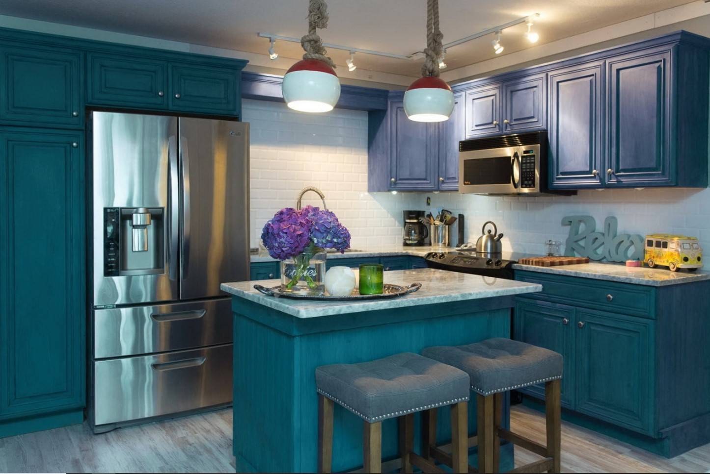 Кухня сине зеленого цвета
