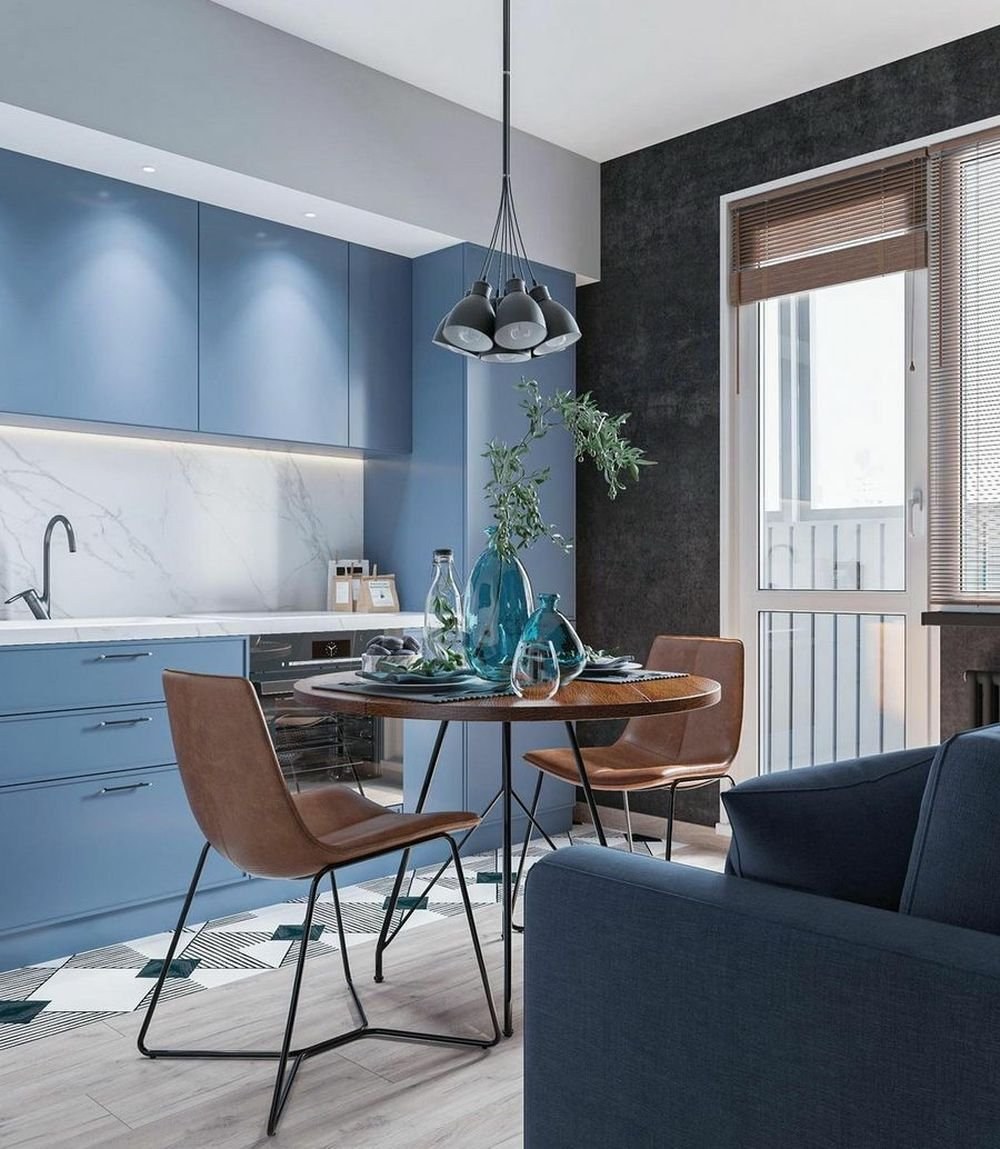 Голубая кухня в интерьере