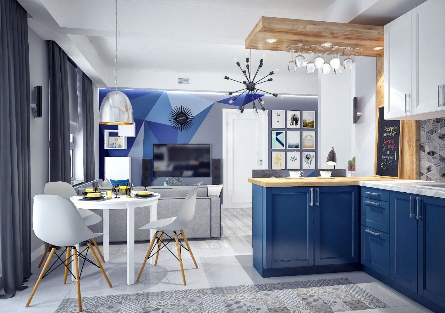 Сине серая кухня
