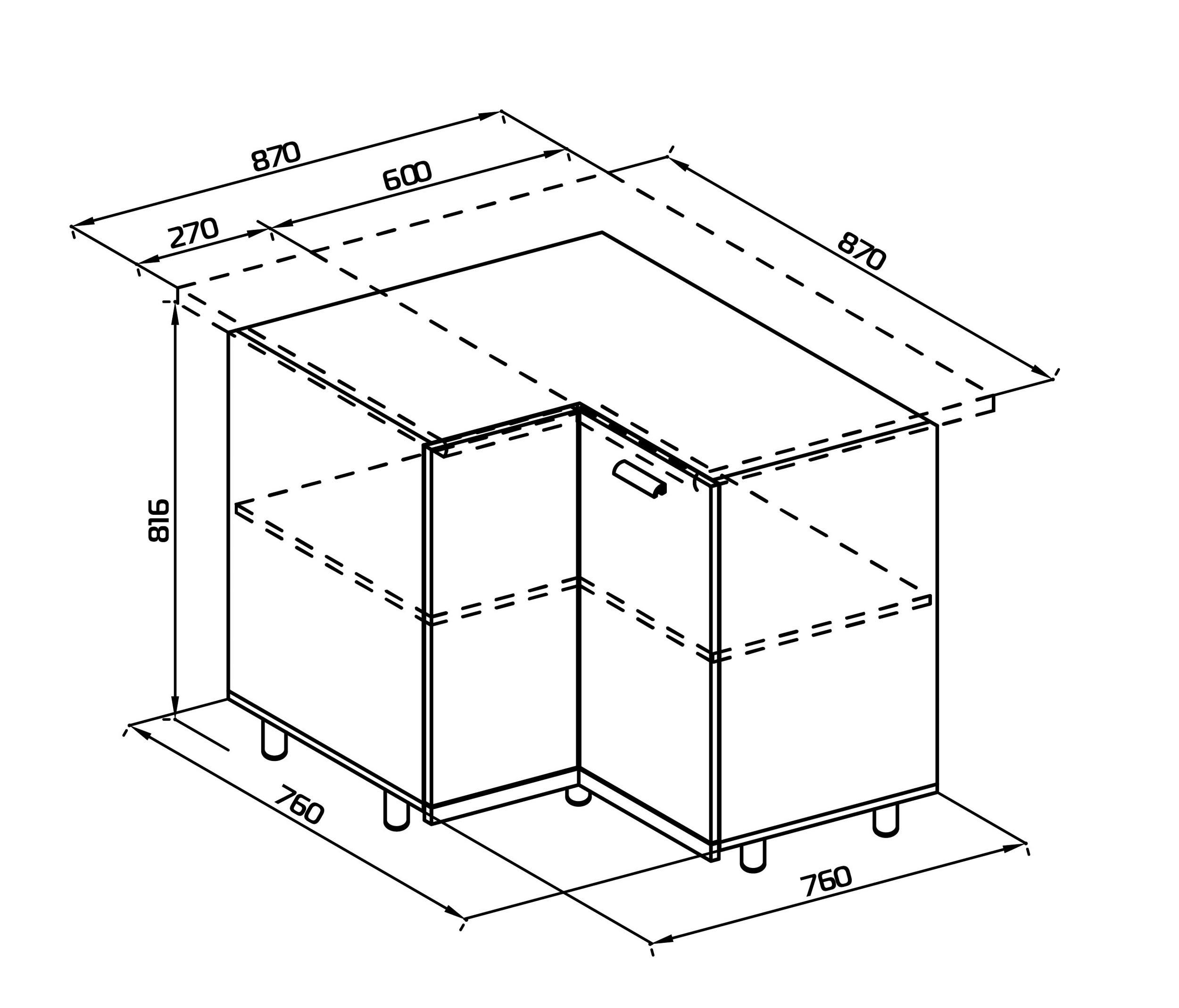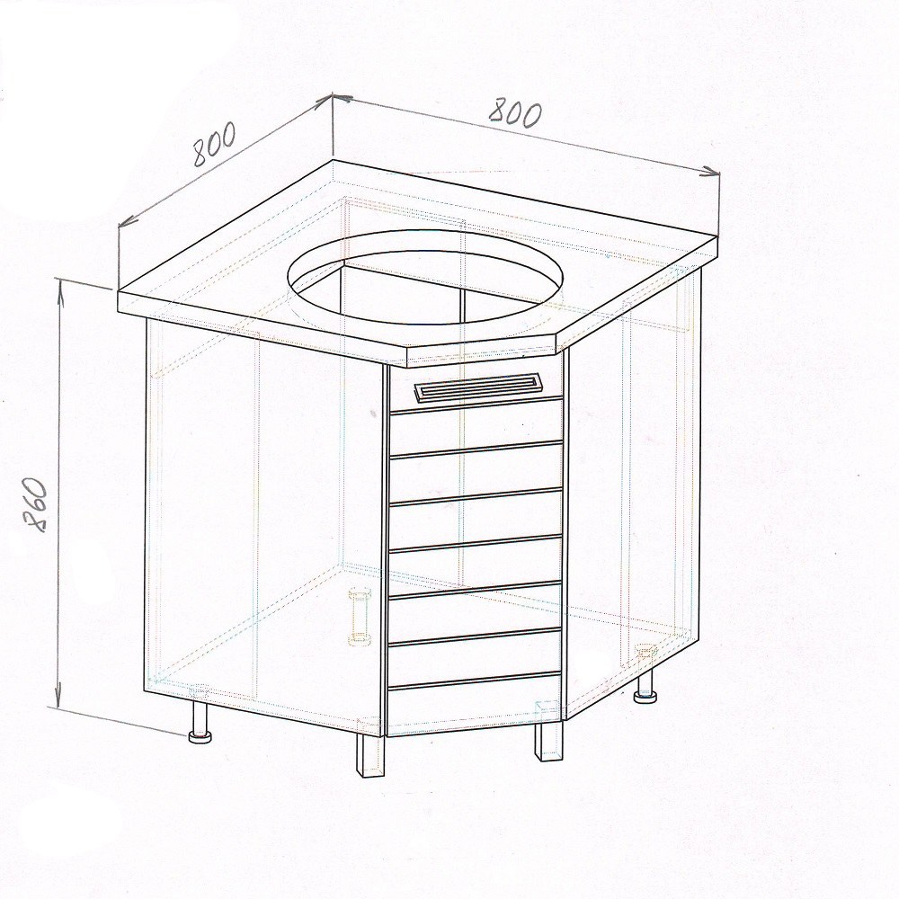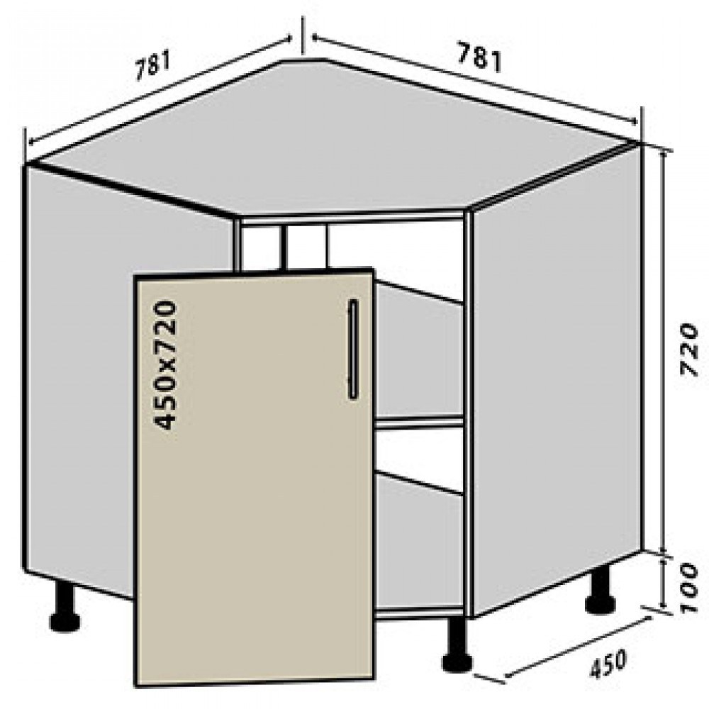 Угловой кухонный шкаф напольный 900х900 чертёж