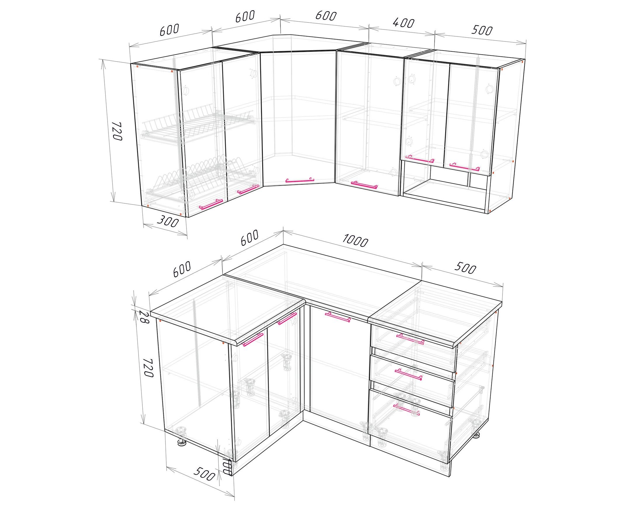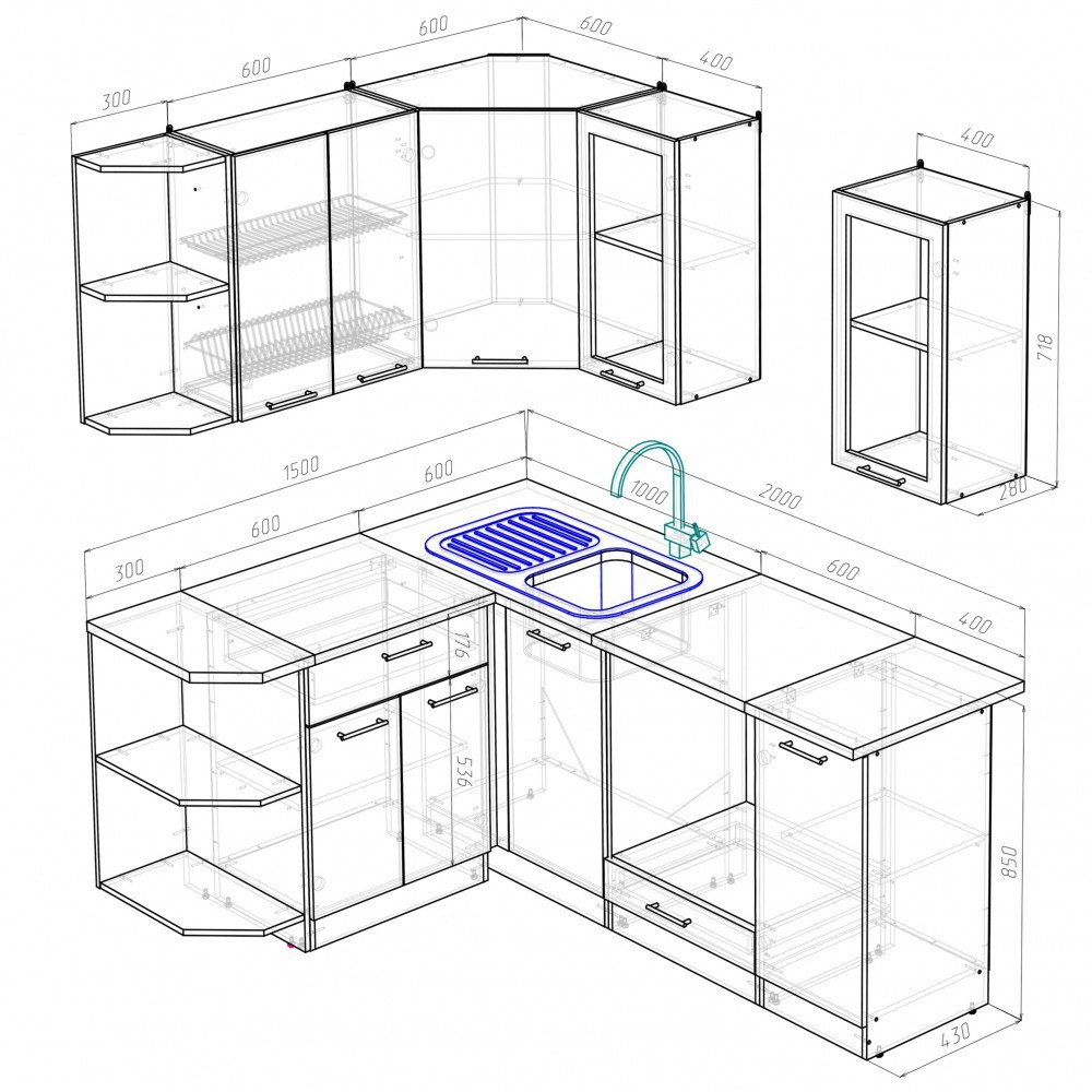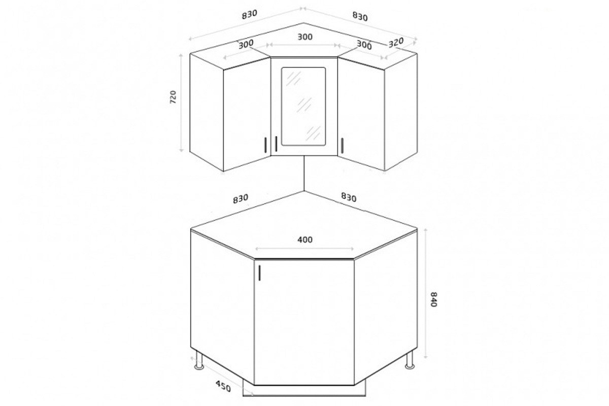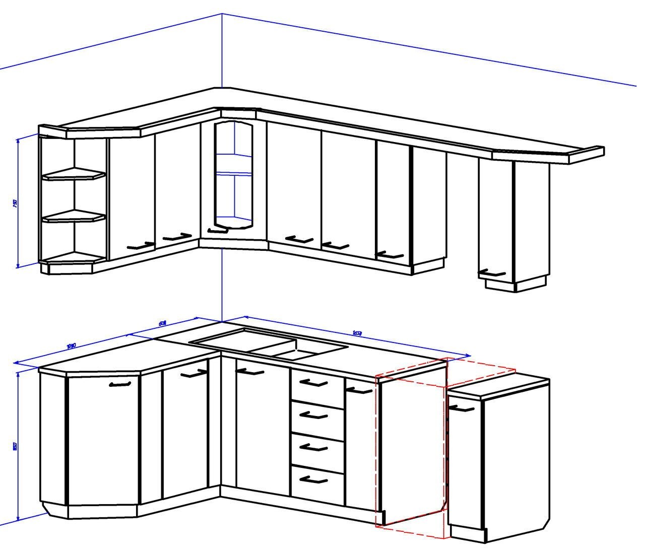 Угловой кухонный шкаф напольный 900х900 чертёж