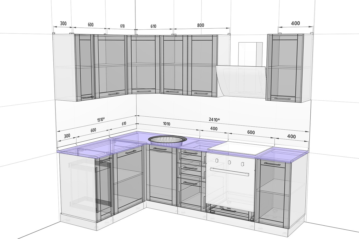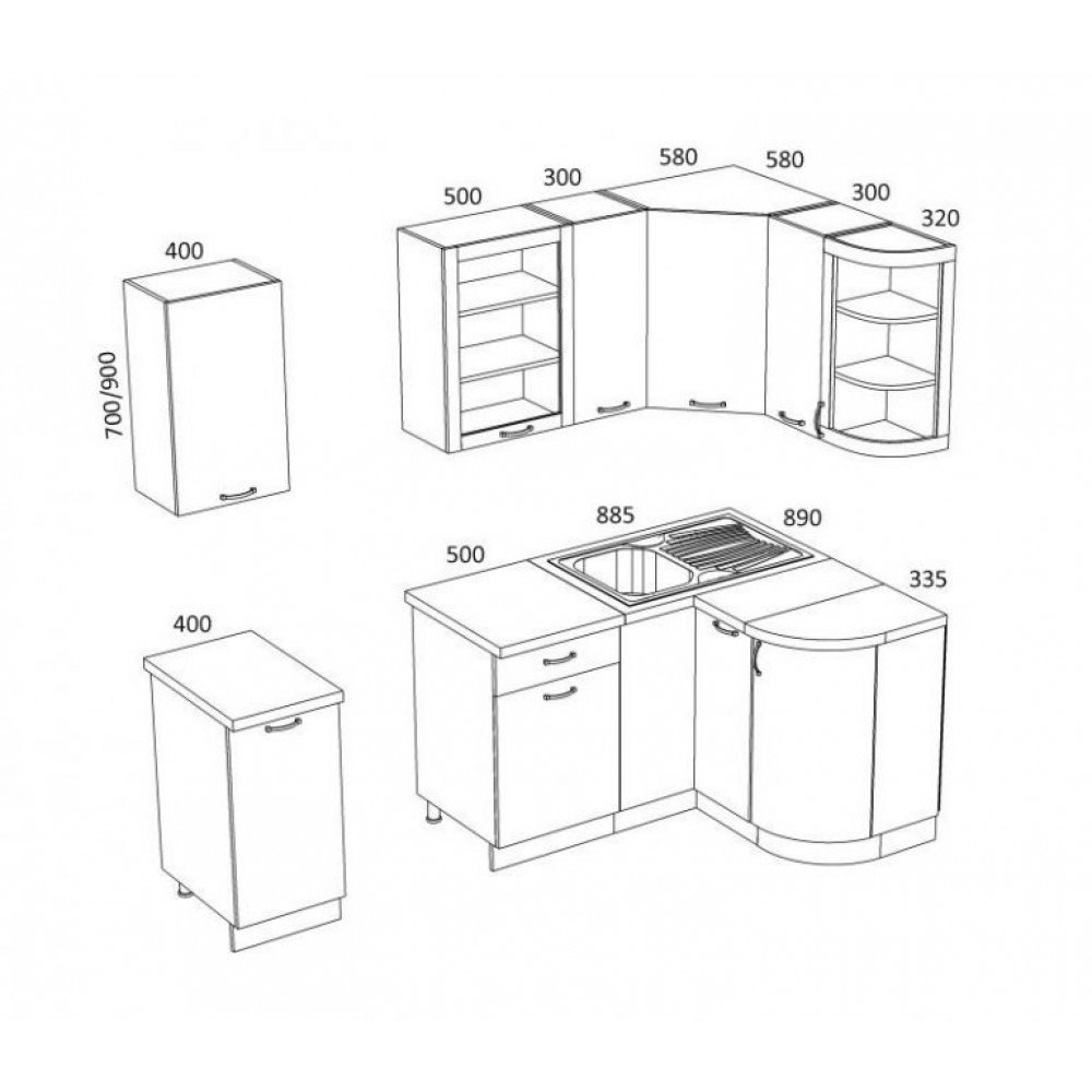Кухня "классика" 1230х1785 с гнутыми фасадами (700 мм)
