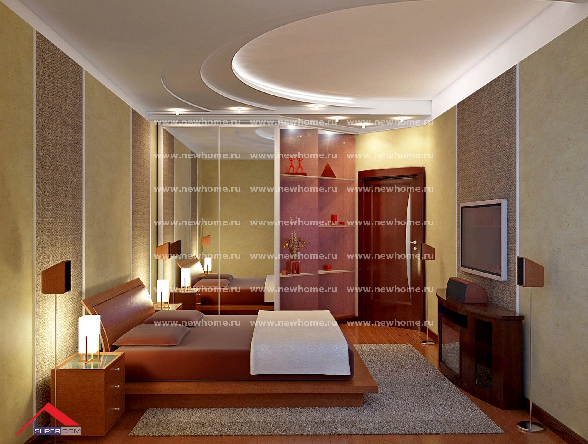 Потолок из гипсокартона с подсветкой в спальне 12кв м