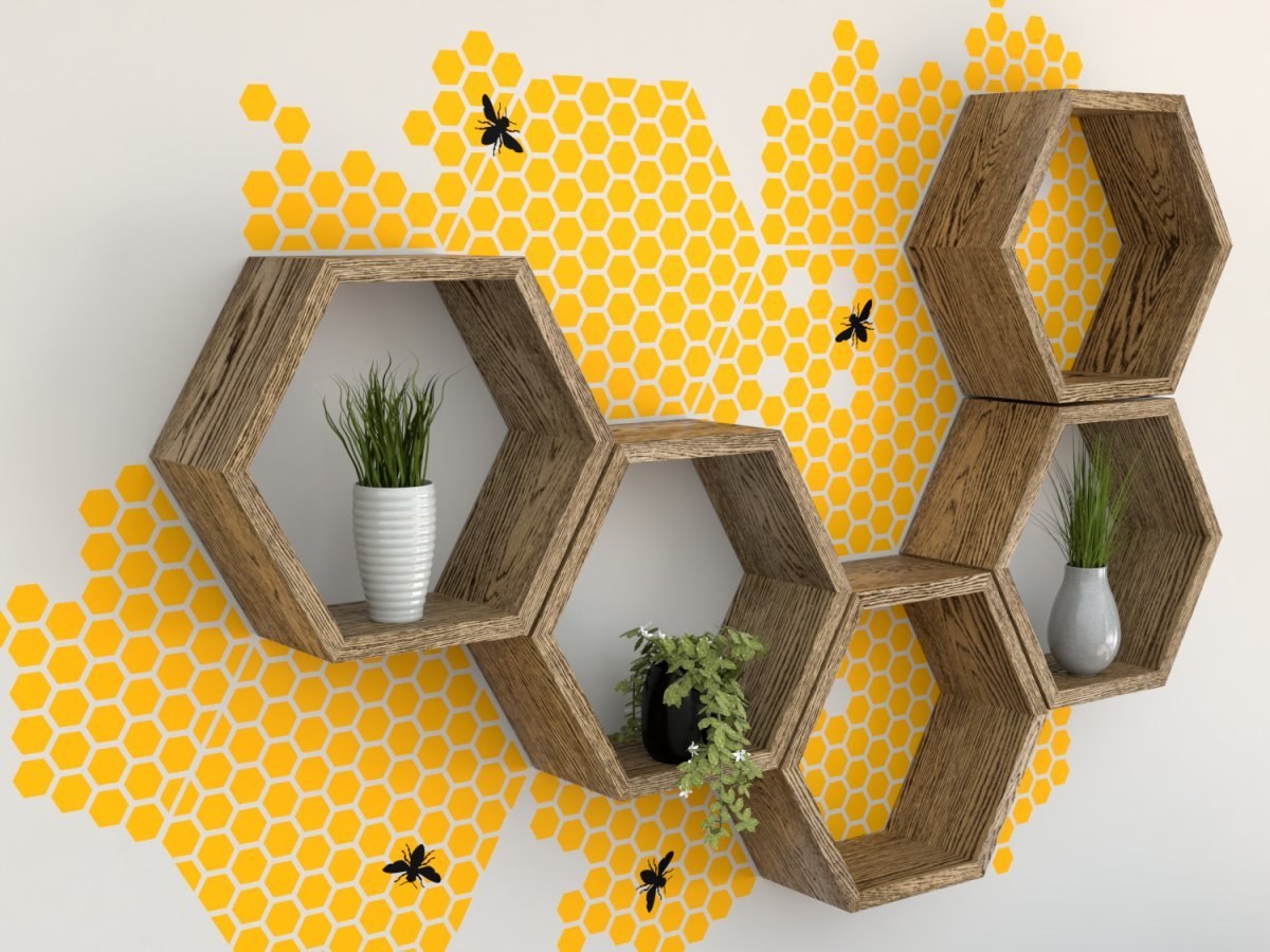 Полки соты в интерьере