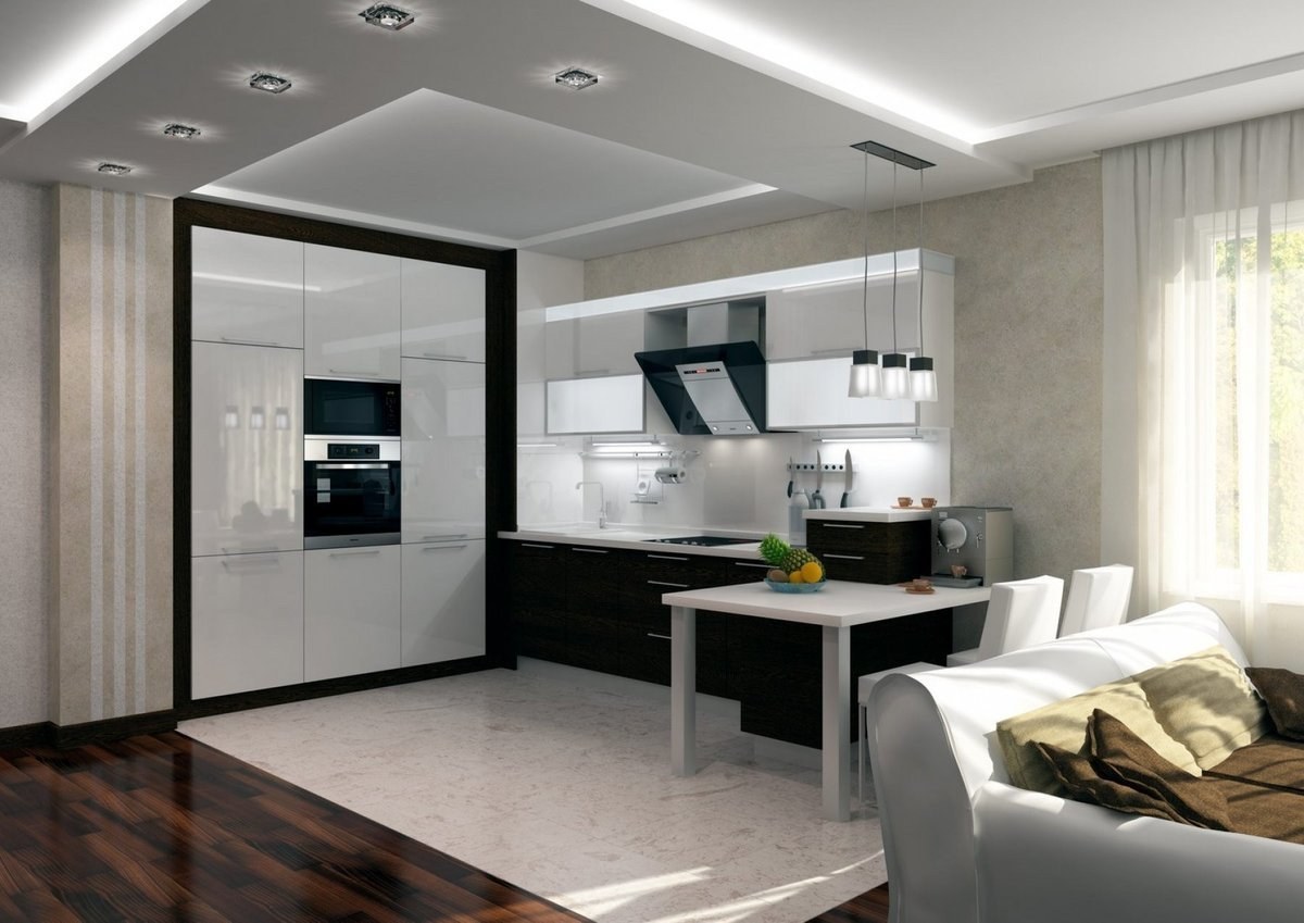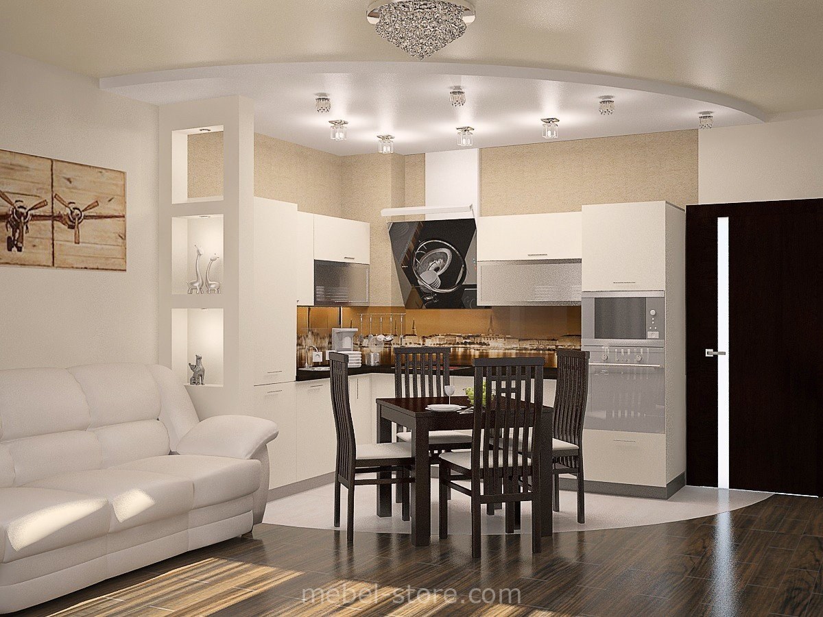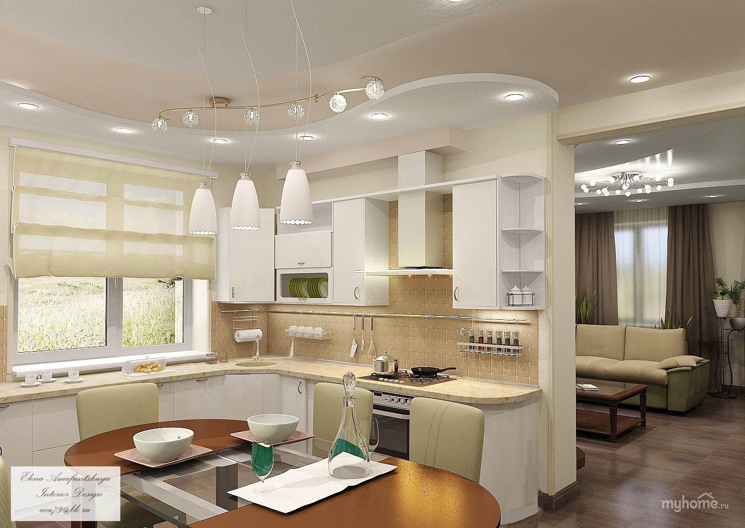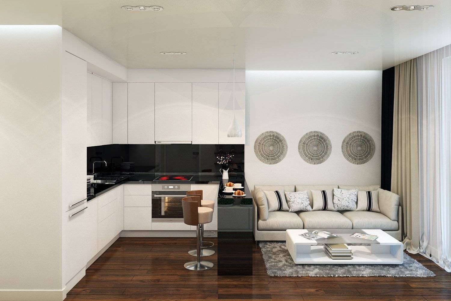 Угловая кухня в гостиной совмещенной с кухней (64 фото)