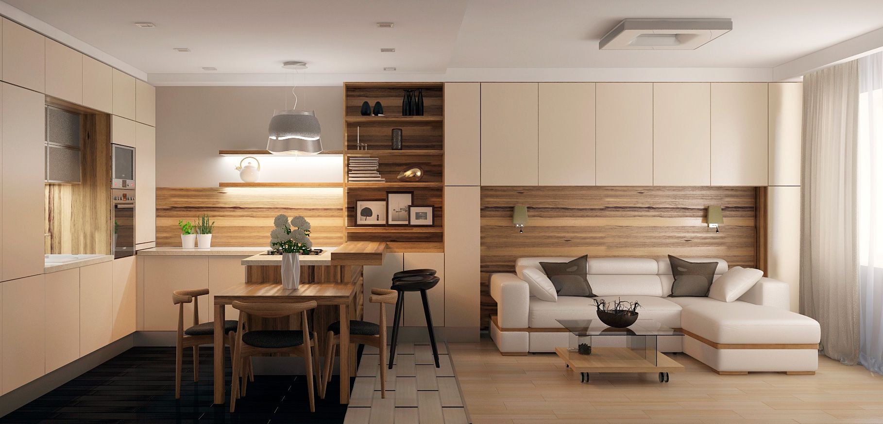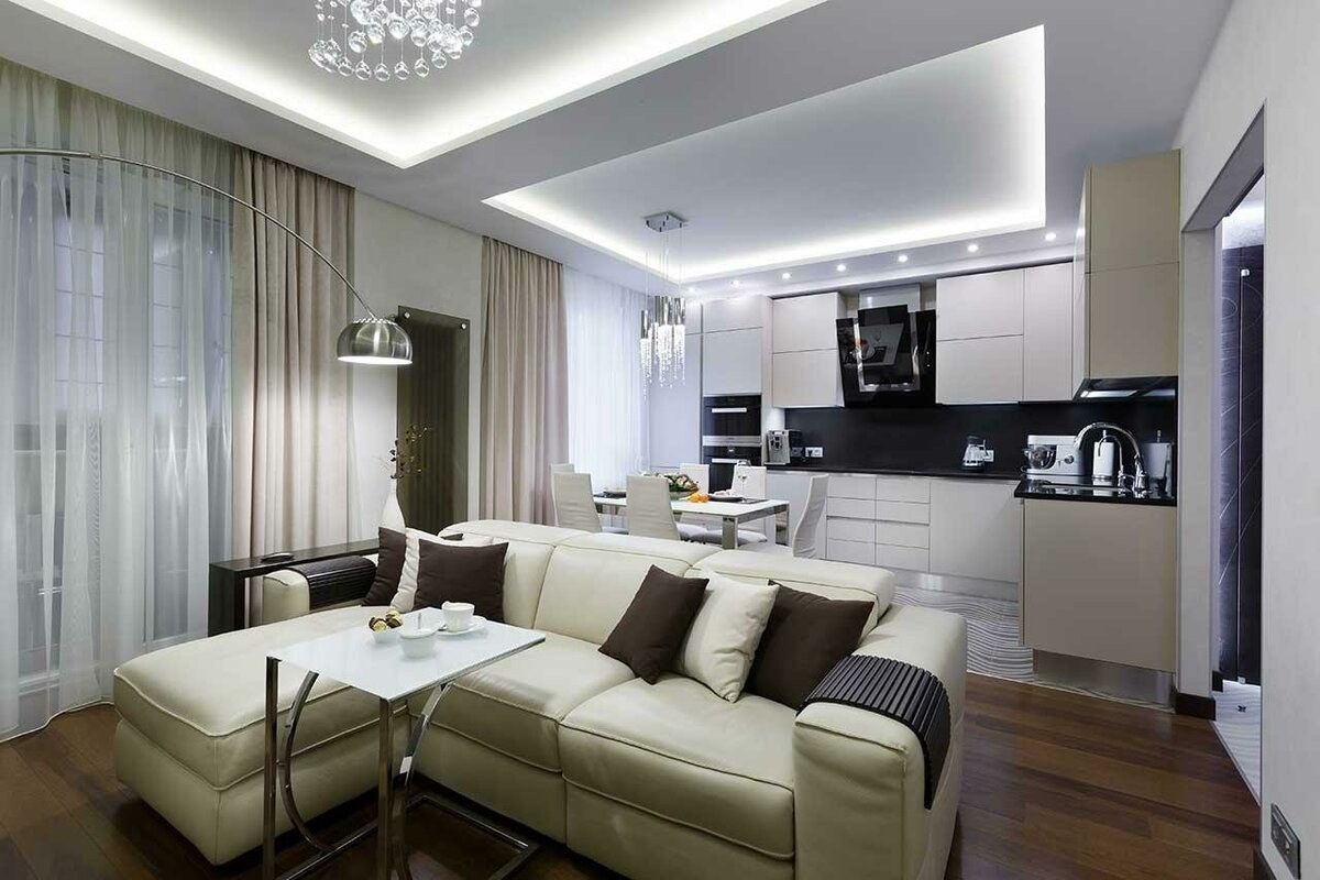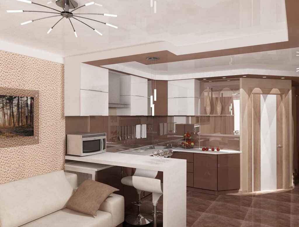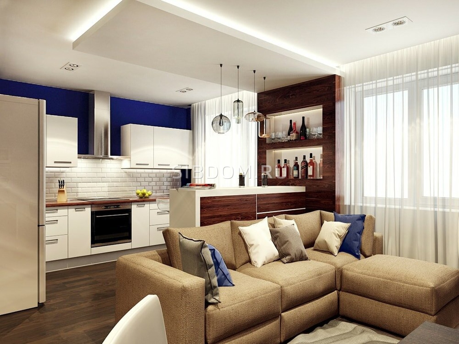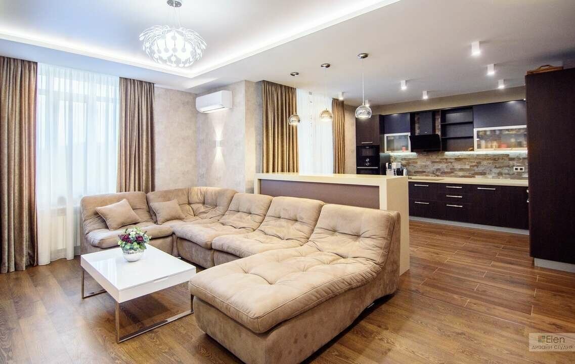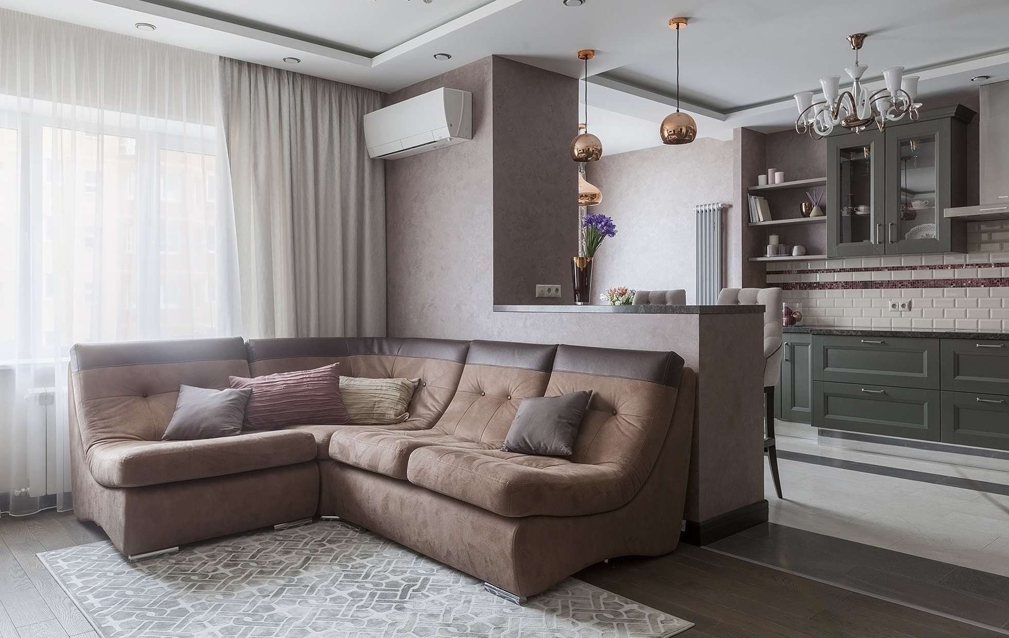 Угловая кухня в гостиной совмещенной с кухней (64 фото)