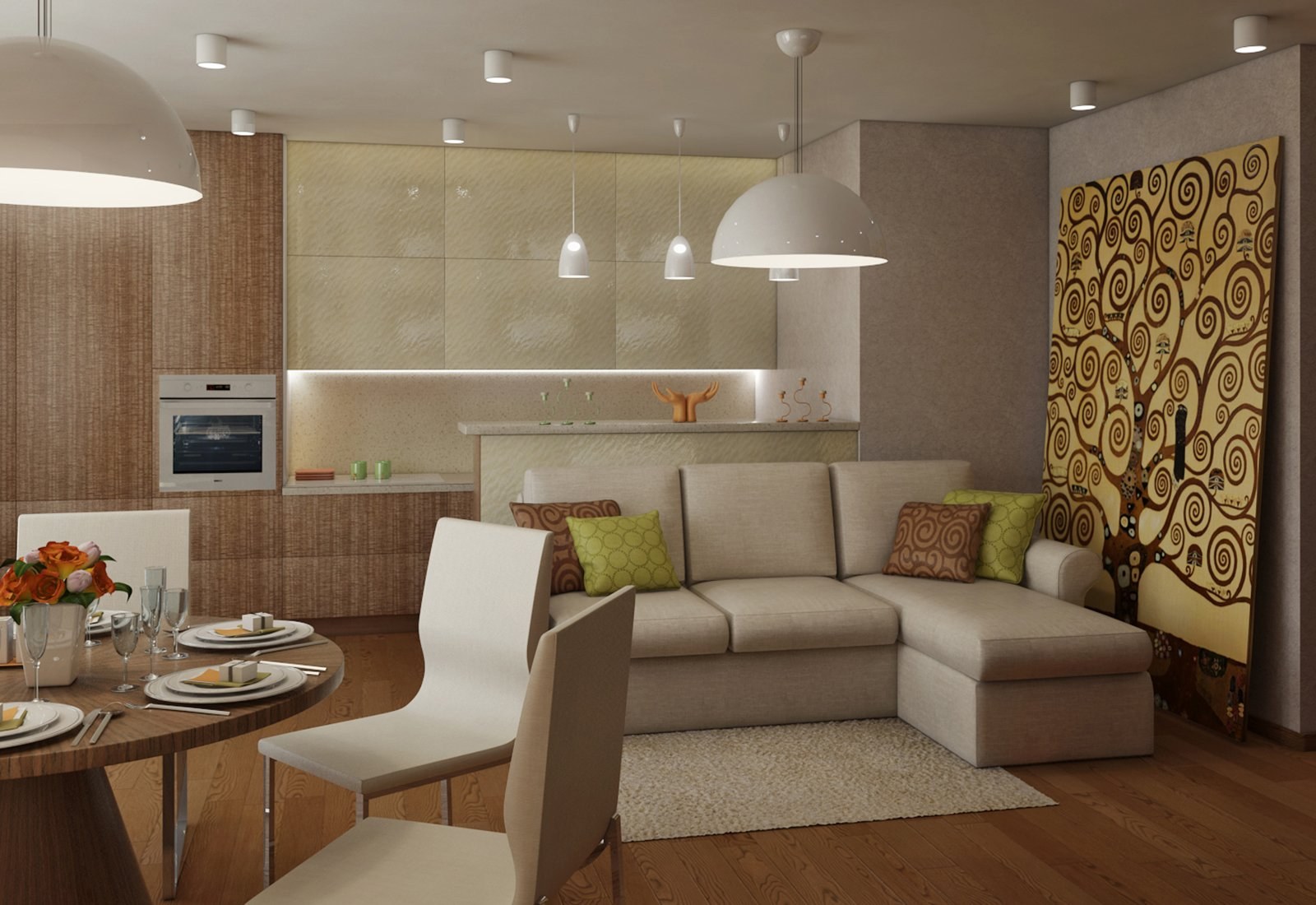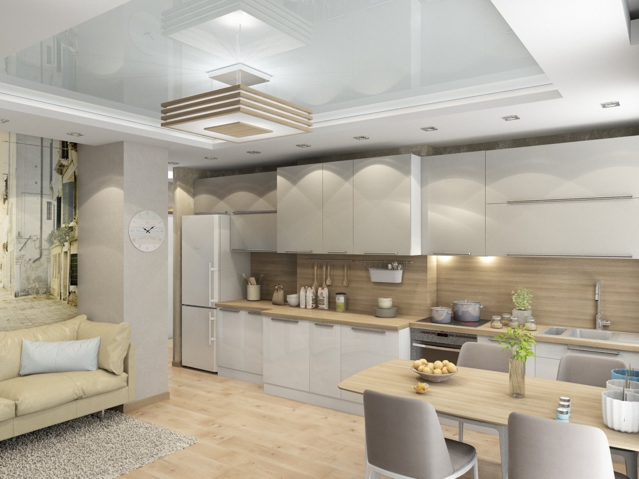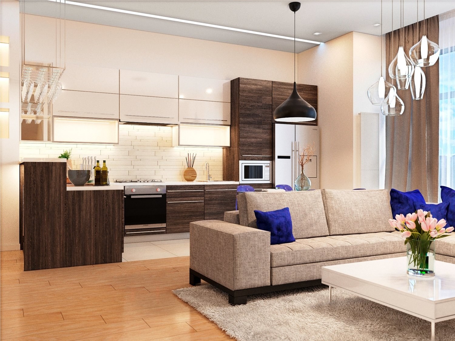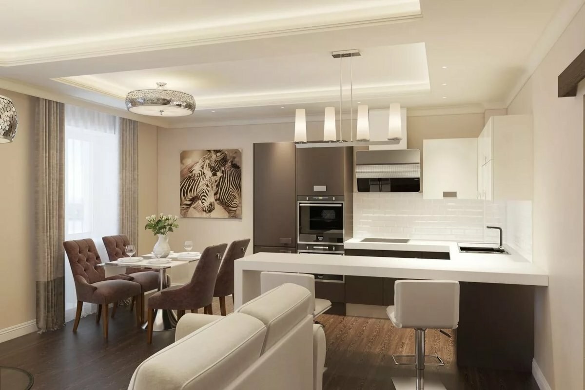 Угловая кухня в гостиной совмещенной с кухней (64 фото)
