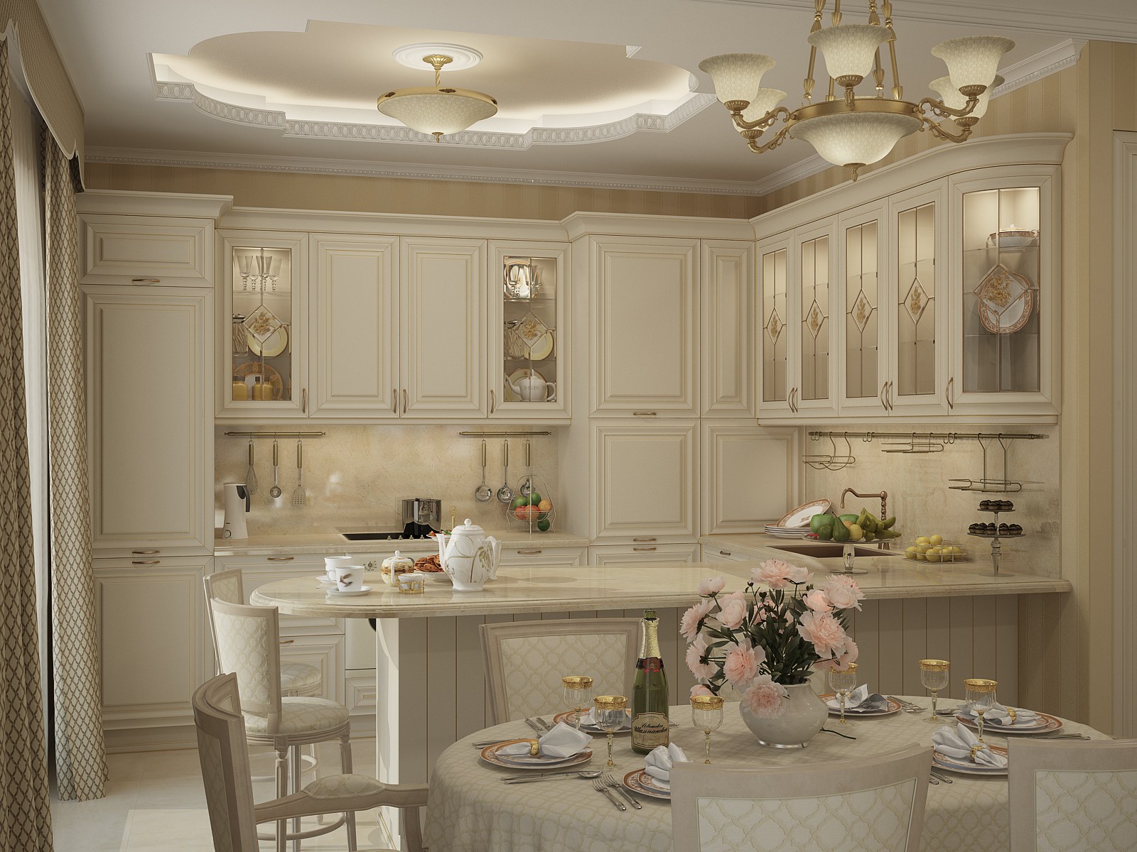 Кухни в классическом стиле в светлых тонах