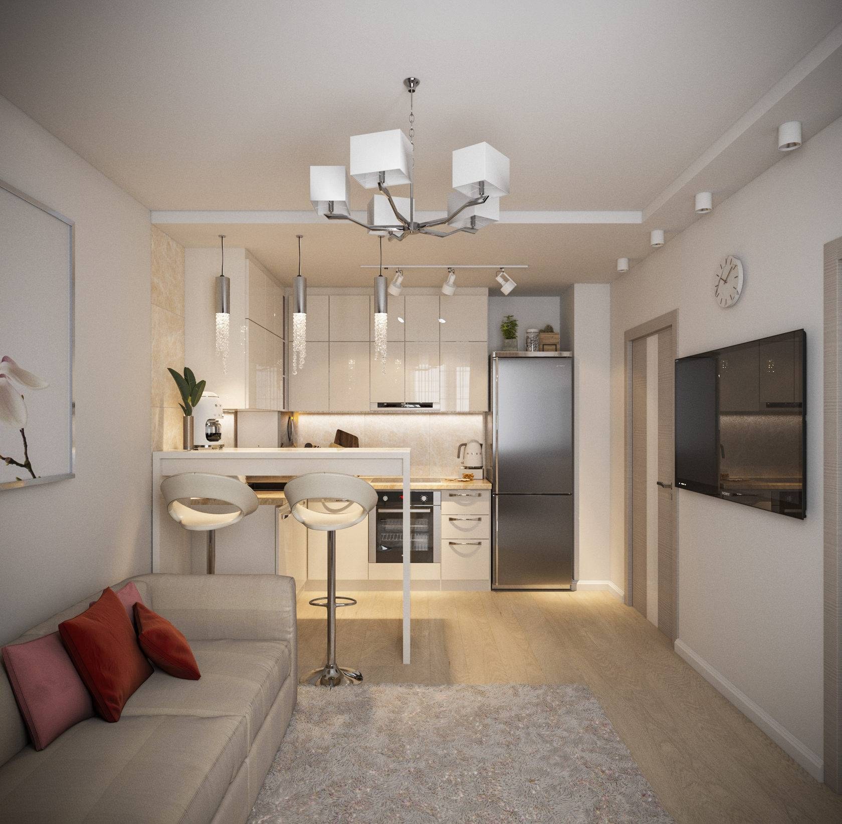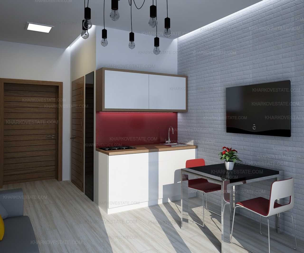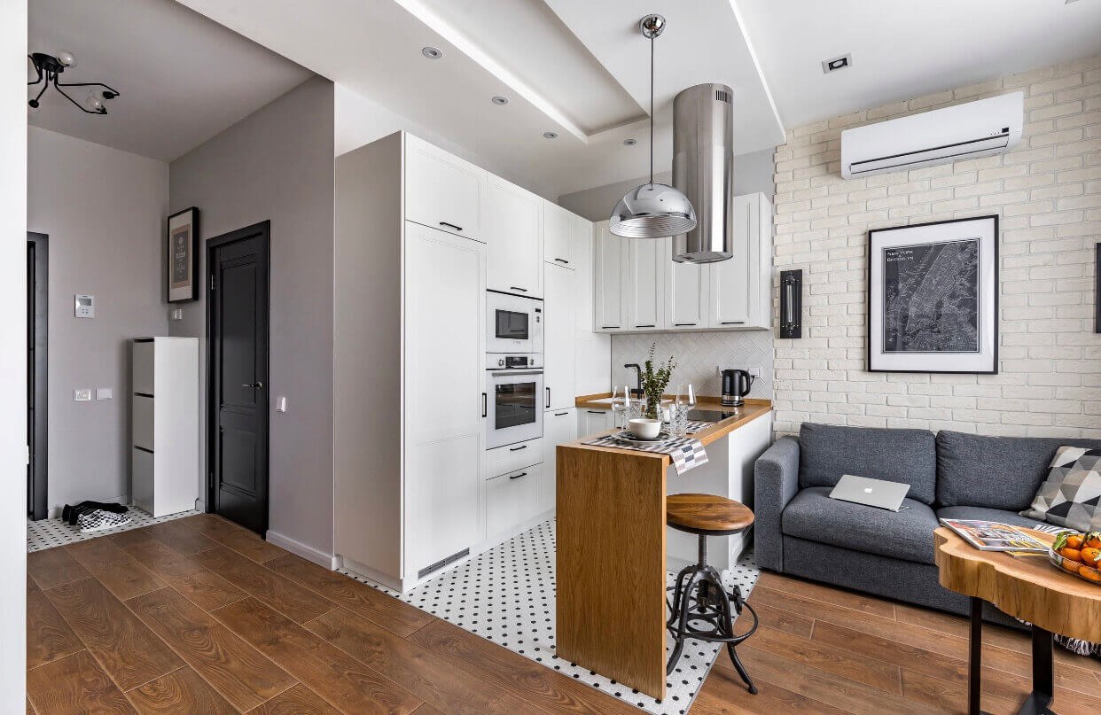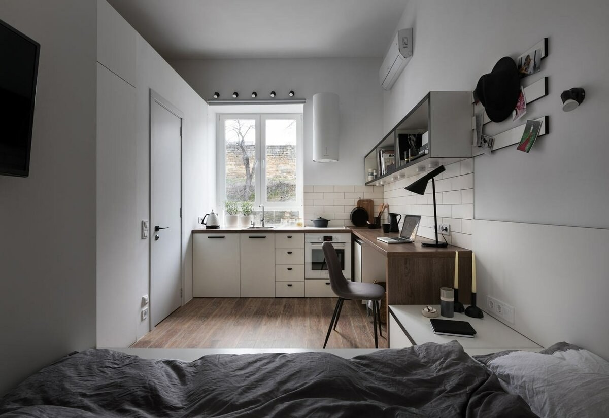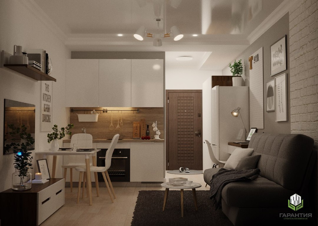 Зонирование кухни в студии 30 кв.м