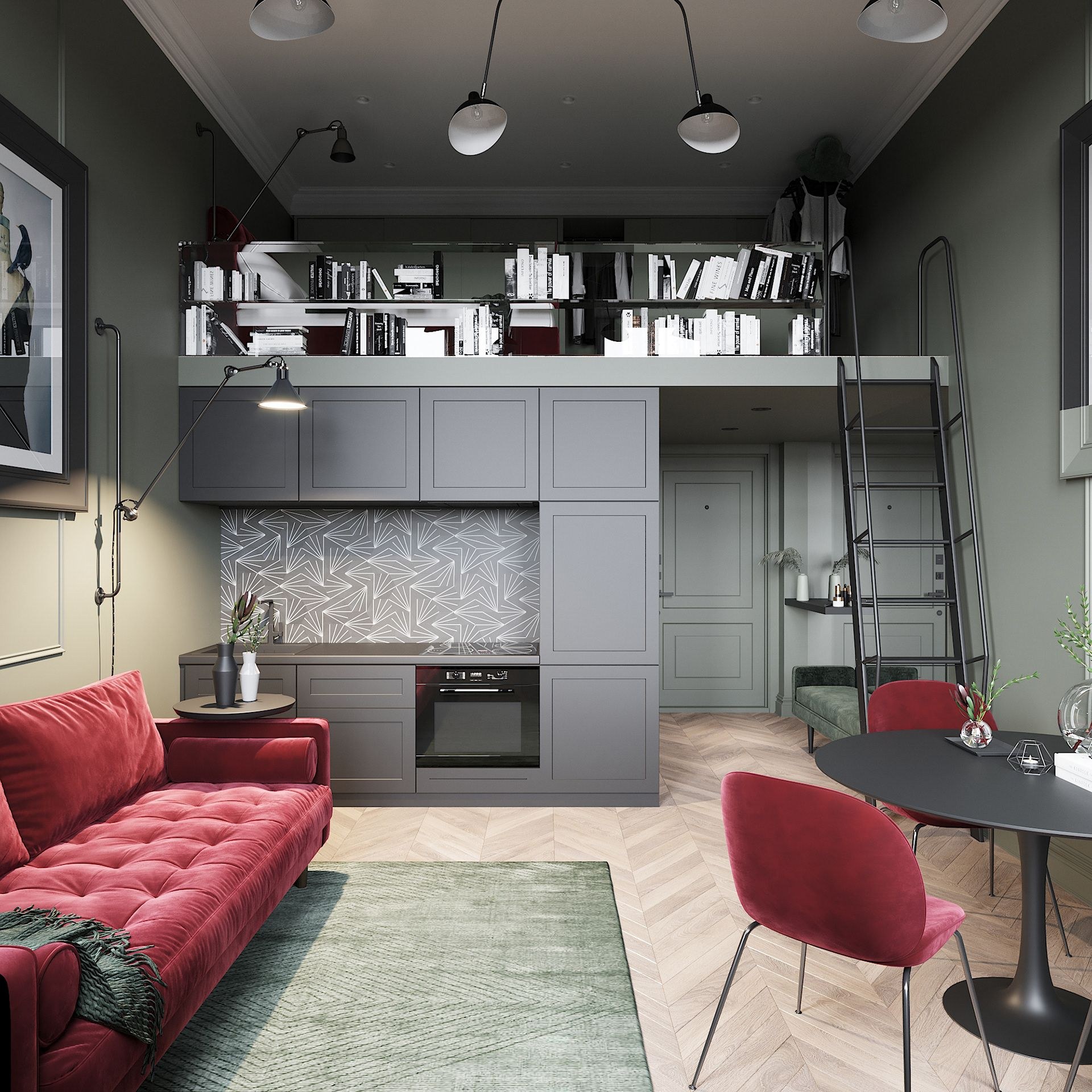 Кухня в студии 25кв м лофт стиль