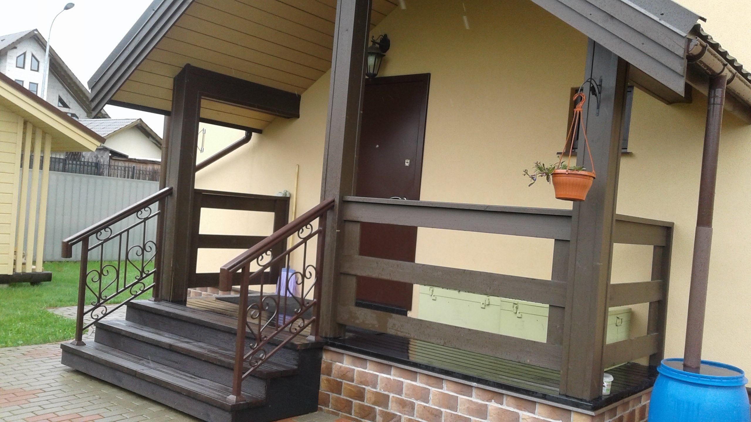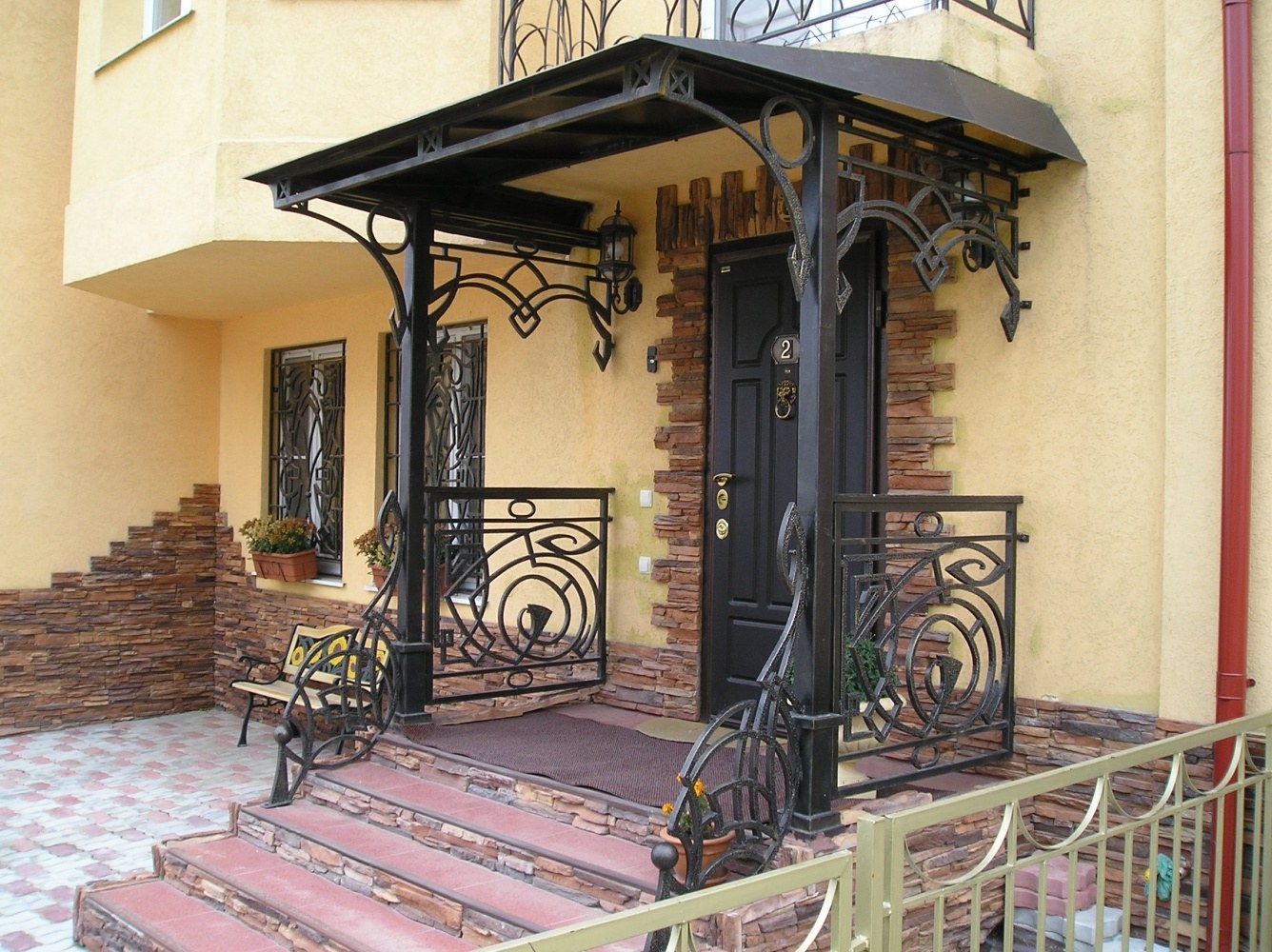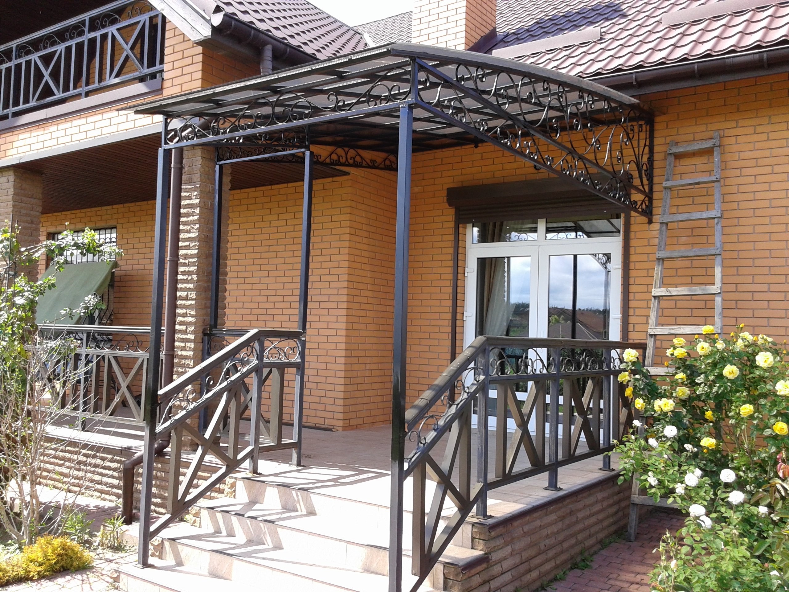 Крыльцо со столбами и навесом в частном доме (60 фото)