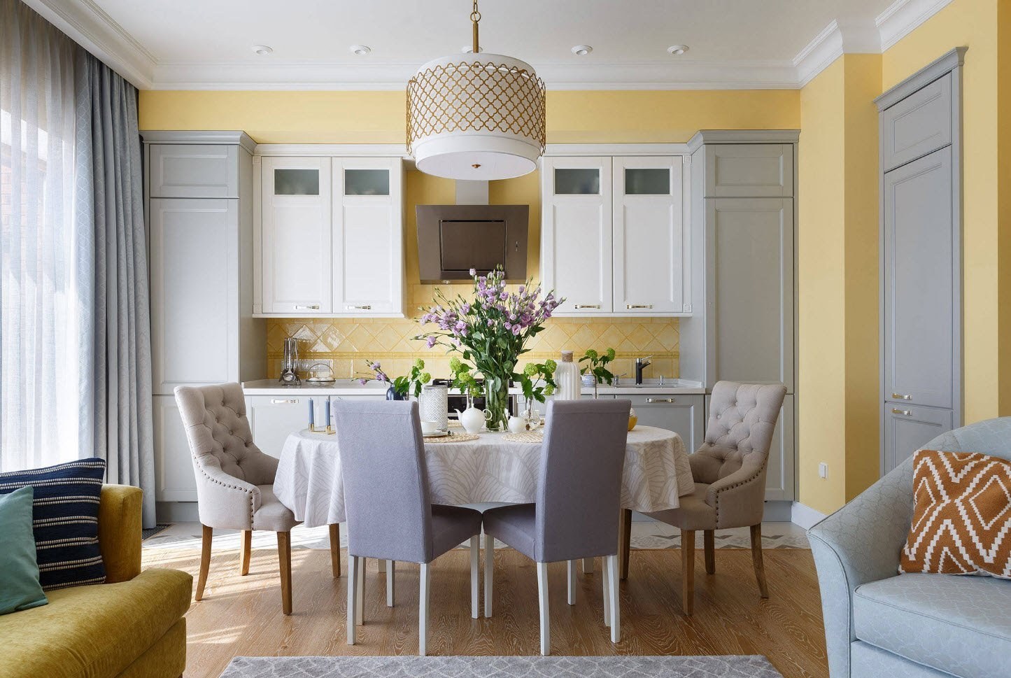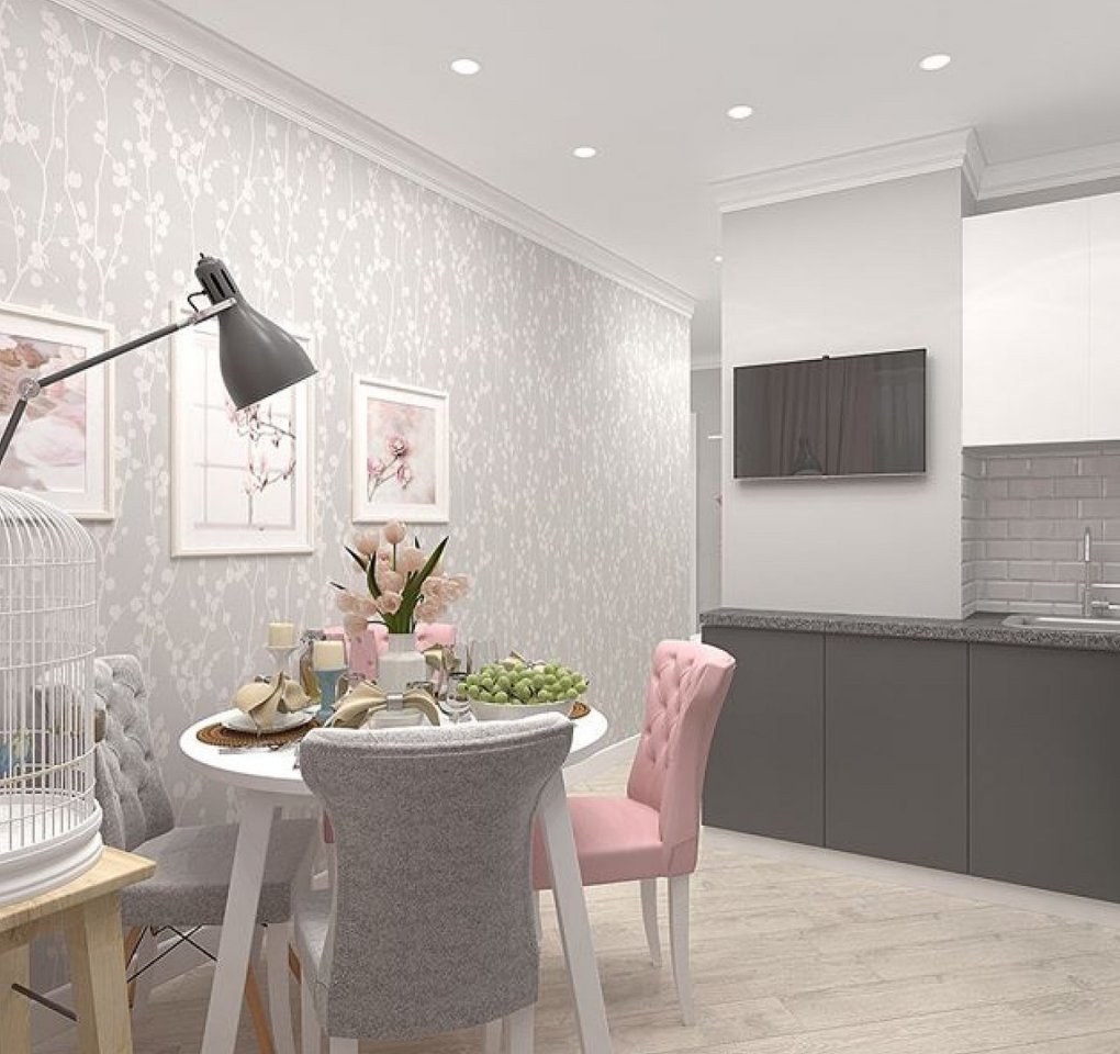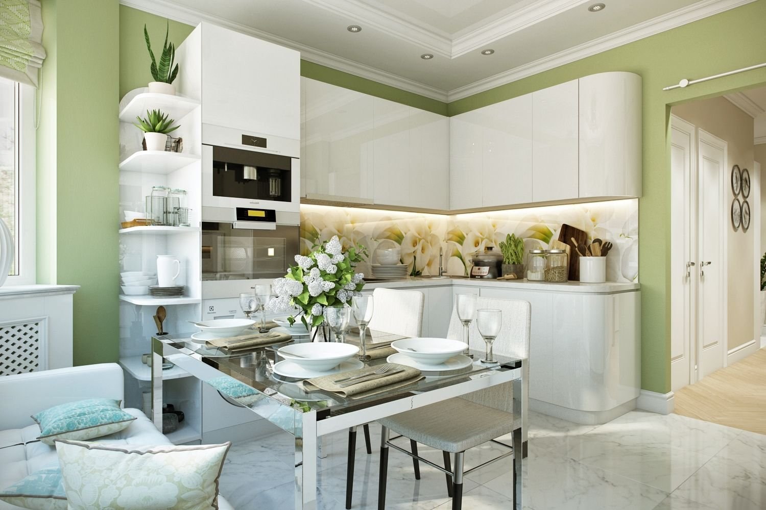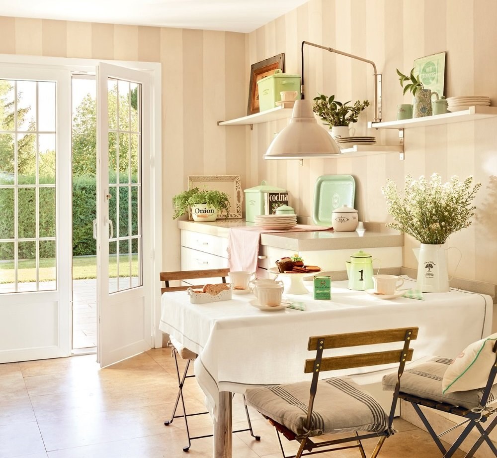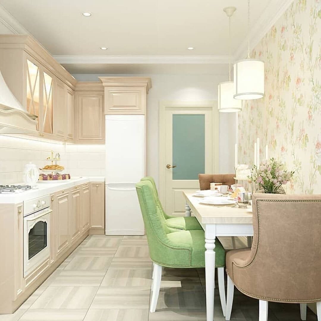 Обои для кухни в интерьере светлые тона с чем сочетаются (55 фото)