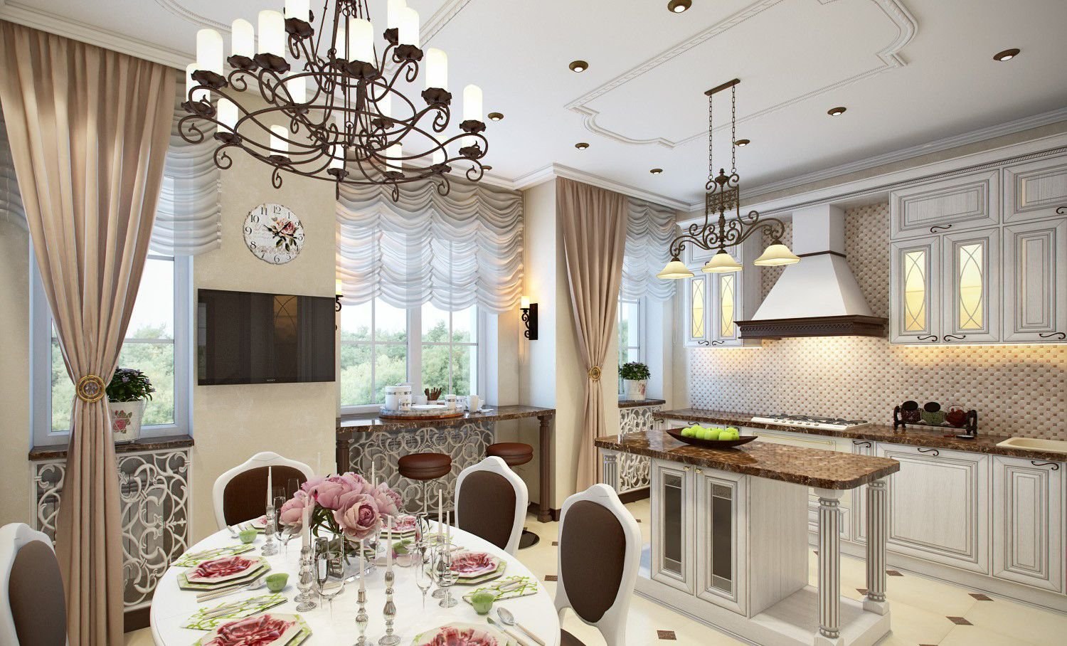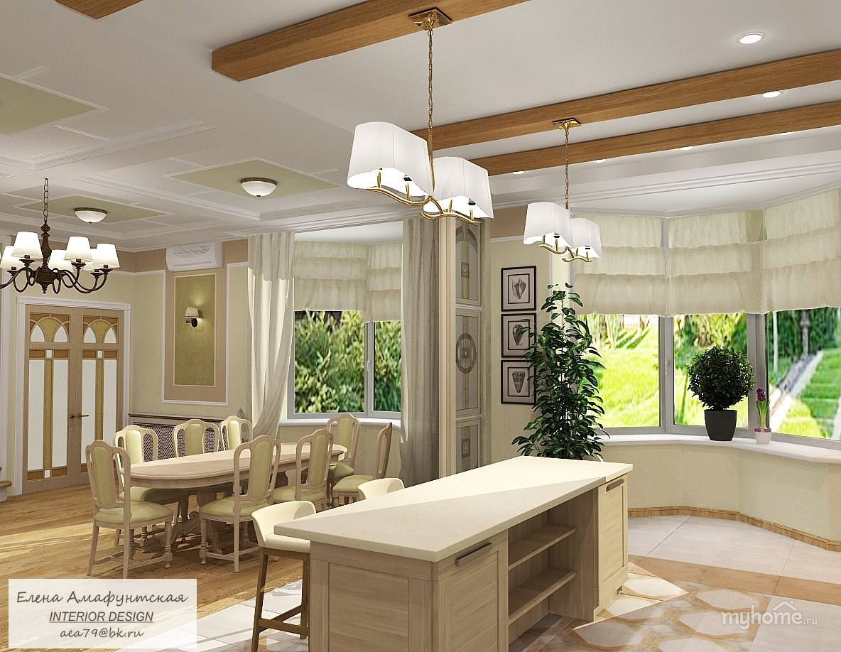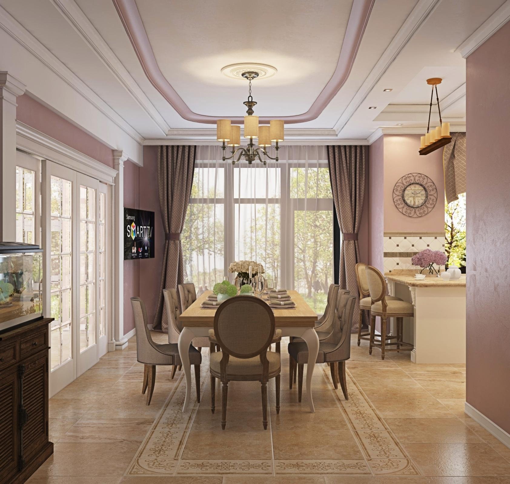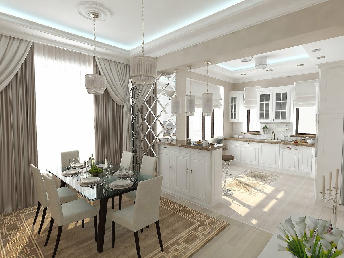 Дизайн кухни столовой в неоклассическом стиле