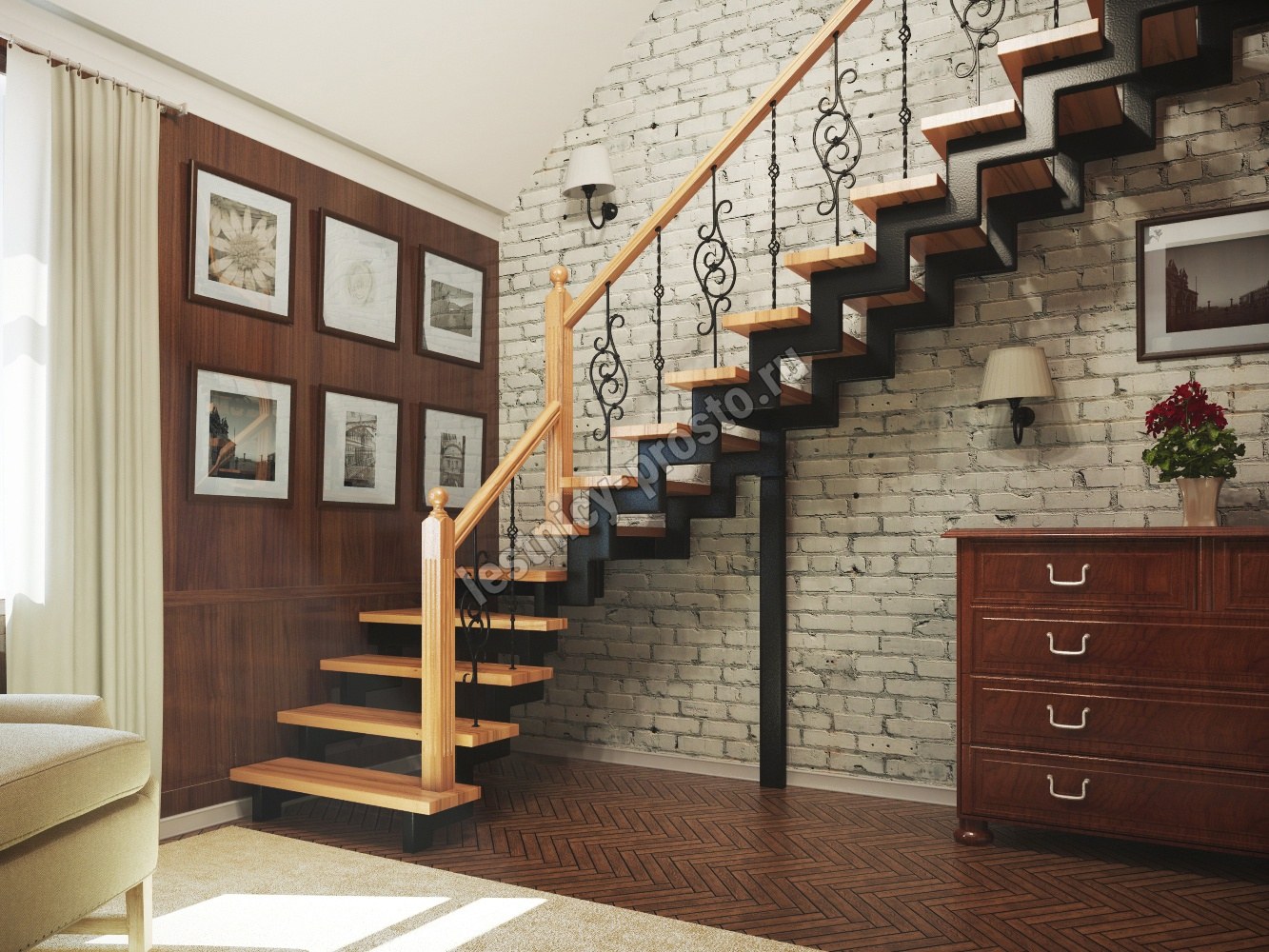 Лестница к-004м 1 п с подступенками сосна 7 уп